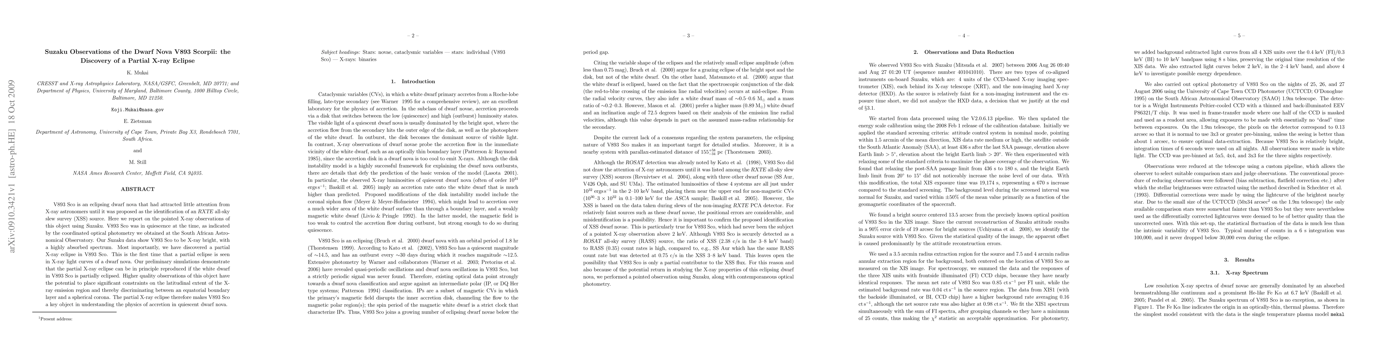Suzaku observations of the dwarf nova V893 Scorpii revealed a highly absorbed X-ray bright spectrum and the first-ever partial X-ray eclipse in a dwarf nova, suggesting the white dwarf is partially eclipsed. This discovery provides insights into the accretion physics in quiescent dwarf novae.