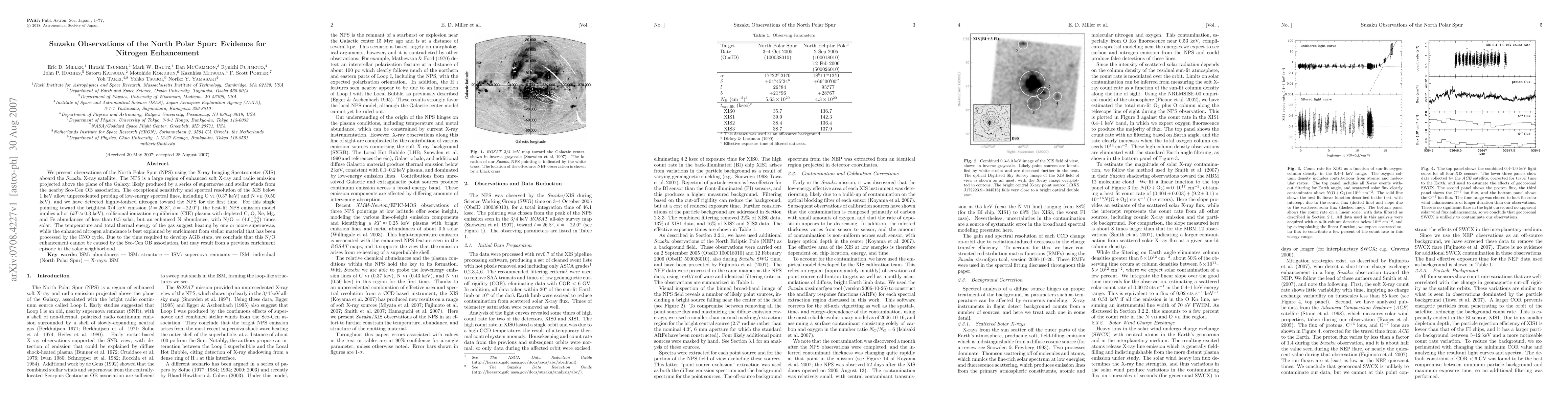 We present observations of the North Polar Spur (NPS) using the X-ray Imaging Spectrometer (XIS) aboard the Suzaku X-ray satellite. The NPS is a large region of enhanced soft X-ray and radio emission projected above the plane of the Galaxy, likely produced by a series of supernovae and stellar winds from the nearby Sco-Cen OB association. The exceptional sensitivity and spectral resolution of the XIS below 1 keV allow unprecedented probing of low-energy spectral lines, including CVI (0.37 keV) and NVII (0.50 keV), and we have detected highly-ionized nitrogen toward the NPS for the first time. For this single pointing toward the brightest 3/4 keV emission (l = 26.8 deg, b = +22.0 deg), the best-fit NPS emission model implies a hot (kT ~ 0.3 keV), collisional ionization equilibrium (CIE) plasma with depleted C, O, Ne, Mg, and Fe abundances of less than 0.5 solar, but an enhanced N abundance, with N/O = 4.0 +0.4,-0.5 times solar. The temperature and total thermal energy of the gas suggest heating by one or more supernovae, while the enhanced nitrogen abundance is best explained by enrichment from stellar material that has been processed by the CNO cycle. Due to the time required to develop AGB stars, we conclude that this N/O enhancement cannot be caused by the Sco-Cen OB association, but may result from a previous enrichment episode in the solar neighborhood.
