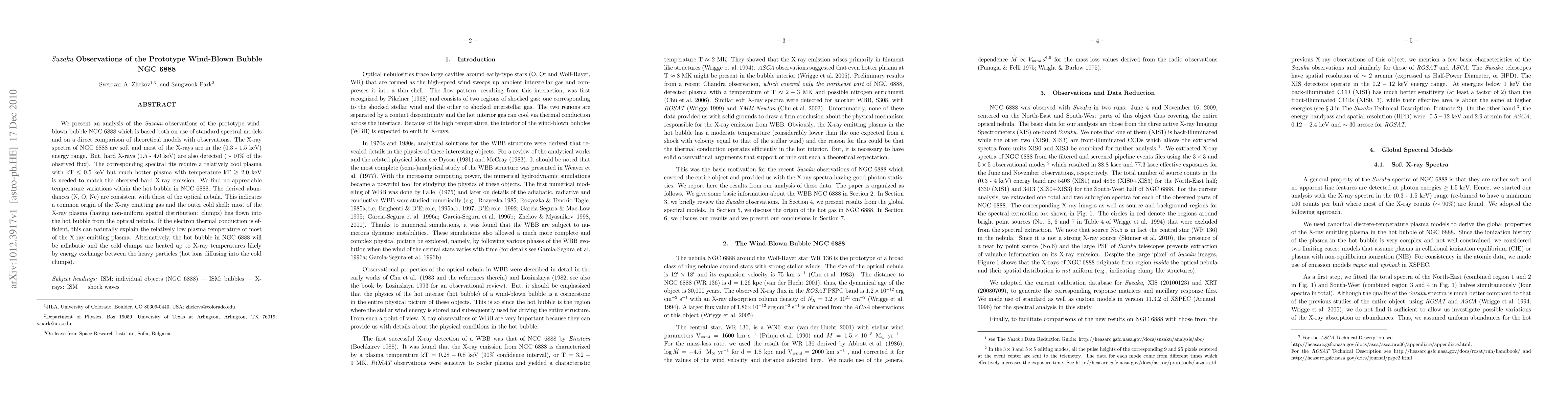 We present an analysis of the Suzaku observations of the prototype wind-blown bubble NGC 6888 which is based both on use of standard spectral models and on a direct comparison of theoretical models with observations. The X-ray spectra of NGC 6888 are soft and most of the X-rays are in the (0.3 - 1.5 keV) energy range. But, hard X-rays (1.5 - 4.0 keV) are also detected (~10% of the observed flux). The corresponding spectral fits require a relatively cool plasma with kT < 0.5 keV but much hotter plasma with temperature kT > 2.0 keV is needed to match the observed hard X-ray emission. We find no appreciable temperature variations within the hot bubble in NGC 6888. The derived abundances (N, O, Ne) are consistent with those of the optical nebula. This indicates a common origin of the X-ray emitting gas and the outer cold shell: most of the X-ray plasma (having non-uniform spatial distribution: clumps) has flown into the hot bubble from the optical nebula. If the electron thermal conduction is efficient, this can naturally explain the relatively low plasma temperature of most of the X-ray emitting plasma. Alternatively, the hot bubble in NGC 6888 will be adiabatic and the cold clumps are heated up to X-ray temperatures likely by energy exchange between the heavy particles (hot ions diffusing into the cold clumps).