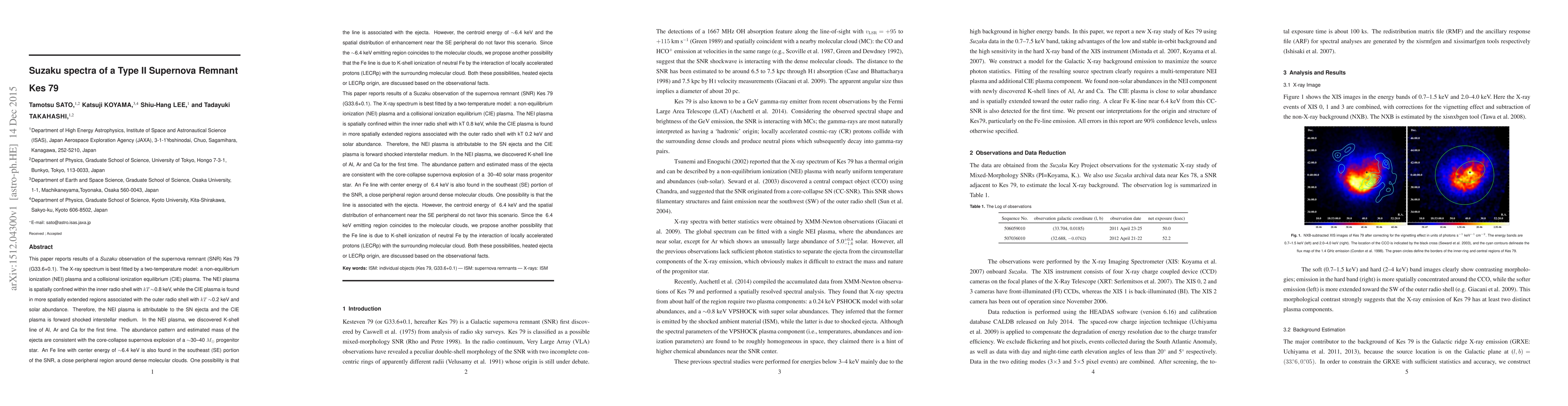 This paper analyzes the Suzaku spectra of the Type II supernova remnant Kes 79, revealing a two-temperature X-ray spectrum indicative of non-equilibrium and collisional ionization plasmas. The study proposes that the NEI plasma within the inner shell is from SN ejecta, while the CIE plasma in the outer shell is from the forward-shocked interstellar medium, with notable K-shell lines of Al, Ar, and Ca discovered.