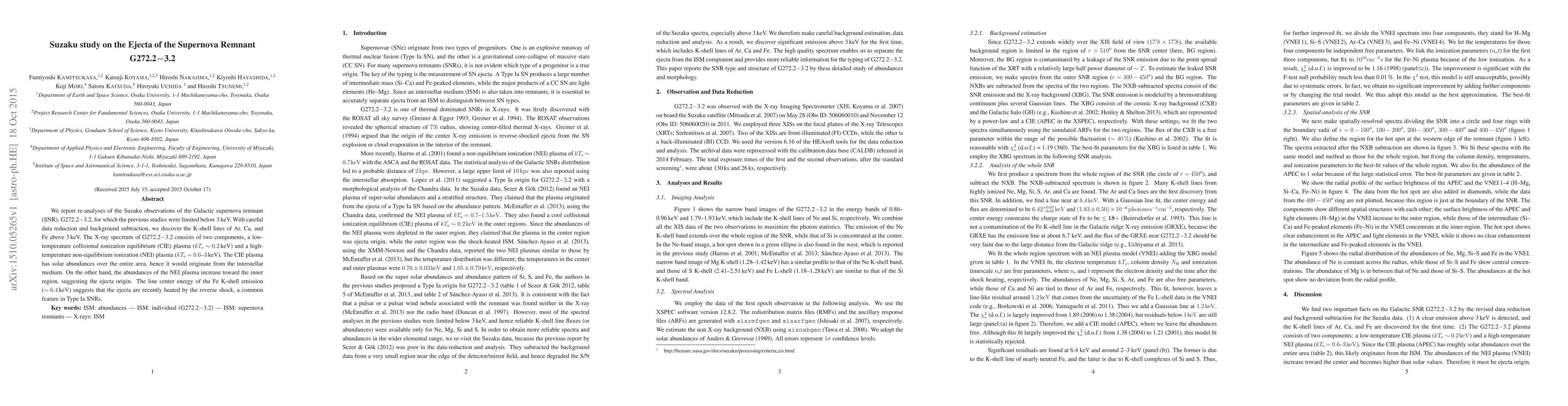 This paper reports re-analyses of Suzaku observations of the supernova remnant G272.2$-$3.2, revealing K-shell lines of Ar, Ca, and Fe above 3 keV. The X-ray spectrum consists of two plasma components, indicating different origins: a low-temperature CIE plasma from the interstellar medium and a high-temperature NEI plasma, with increasing abundances towards the inner region suggesting ejecta origin.