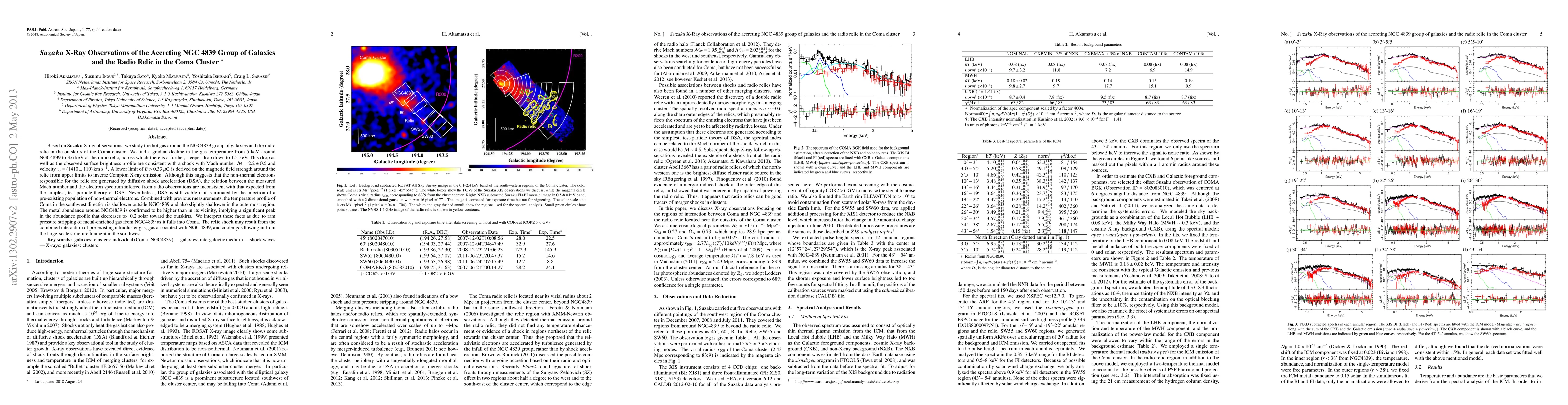 Suzaku X-ray observations reveal a significant temperature drop in the hot gas from NGC 4839 to the radio relic in the Coma cluster, consistent with a shock, suggesting non-thermal electron generation via diffusive shock acceleration. The metal abundance peak around NGC 4839 indicates ram pressure stripping, contributing to the relic shock dynamics.