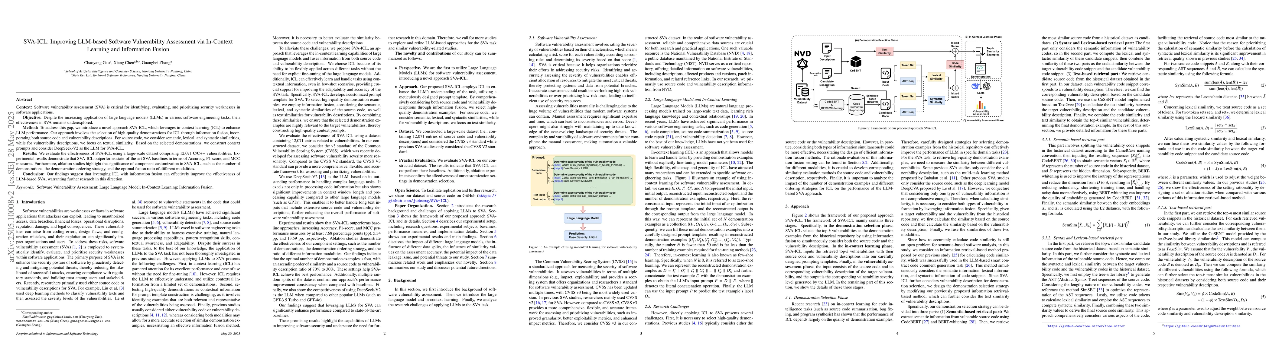 A new approach called SVA-ICL improves large language model-based software vulnerability assessment by leveraging in-context learning and information fusion, outperforming existing methods with high accuracy.