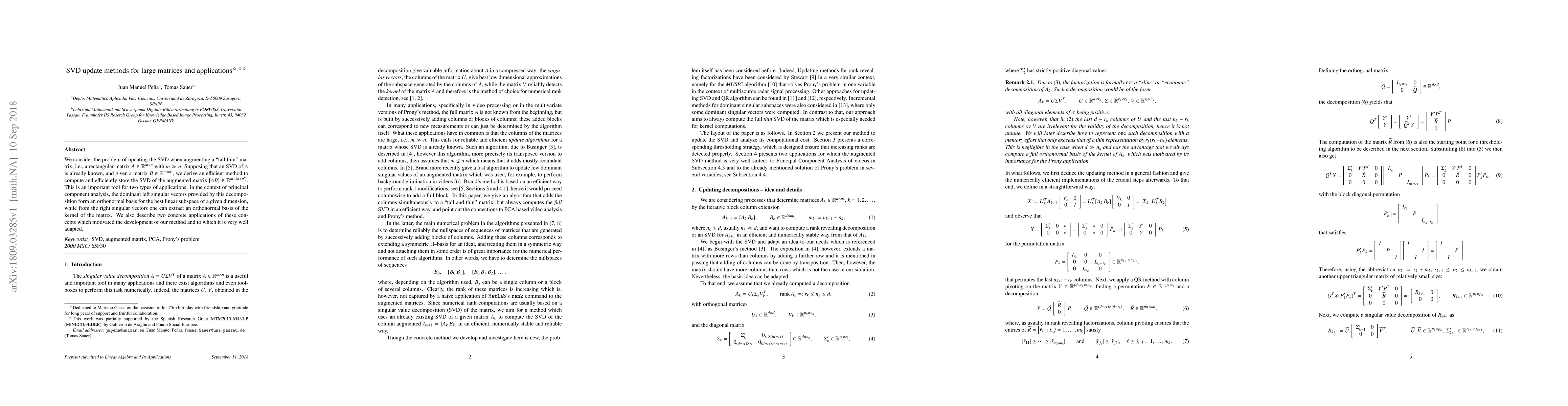 Researchers develop an efficient method to update SVD decompositions when augmenting large matrices with additional data, enabling applications in principal component analysis and other fields.
