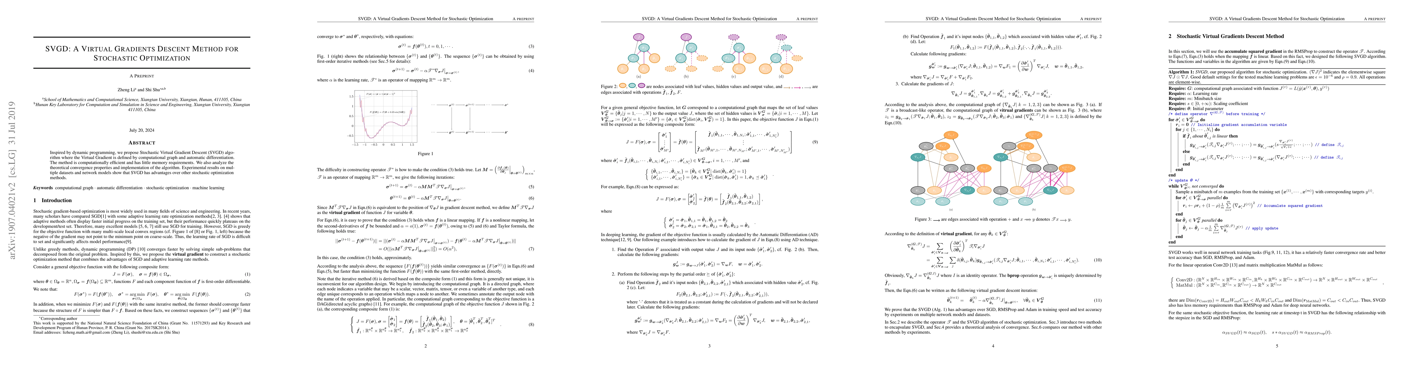 Inspired by dynamic programming, we propose Stochastic Virtual Gradient Descent (SVGD) algorithm where the Virtual Gradient is defined by computational graph and automatic differentiation. The method is computationally efficient and has little memory requirements. We also analyze the theoretical convergence properties and implementation of the algorithm. Experimental results on multiple datasets and network models show that SVGD has advantages over other stochastic optimization methods.