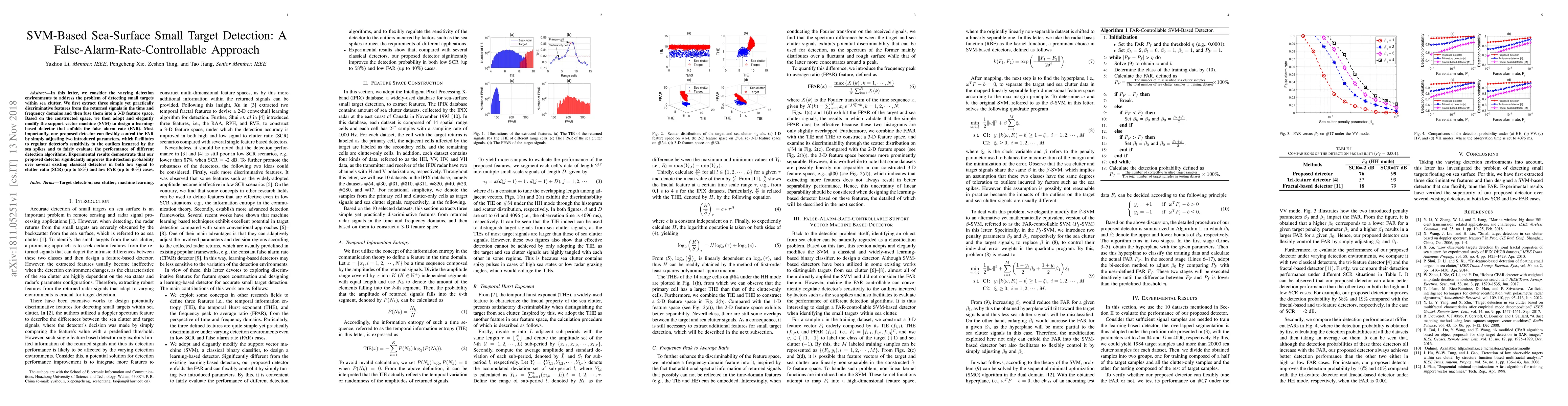 This paper proposes a modified SVM-based detector for identifying small targets in sea clutter, utilizing discriminative features from time and frequency domains. The detector flexibly controls the false alarm rate through adjustable parameters, significantly enhancing detection probability over existing methods.