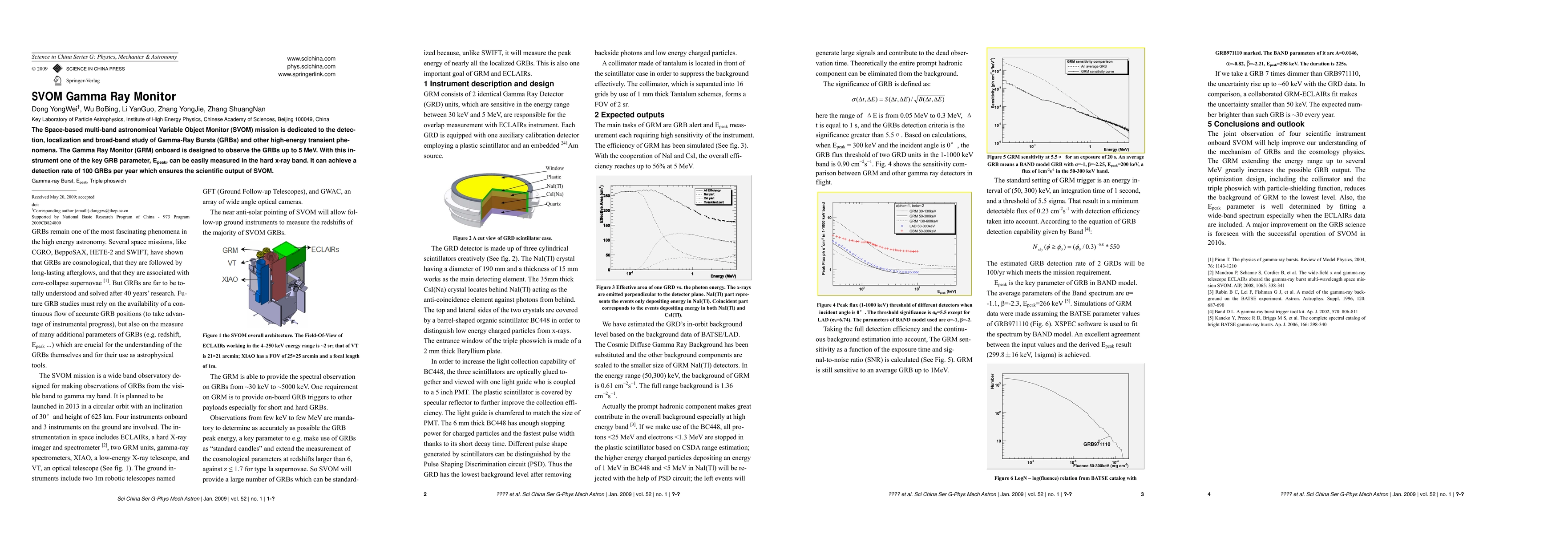 The SVOM mission, including the Gamma Ray Monitor (GRM), is designed for detecting, localizing, and studying Gamma-Ray Bursts (GRBs) and other high-energy transient phenomena. GRM consists of two identical Gamma Ray Detector (GRD) units, each with a NaI(Tl) and a CsI(Na) crystal, along with a plastic scintillator and a P241Am source for calibration. The instrument is optimized for detecting GRBs from ~30 keV to ~5000 keV, with a collimator to suppress background.