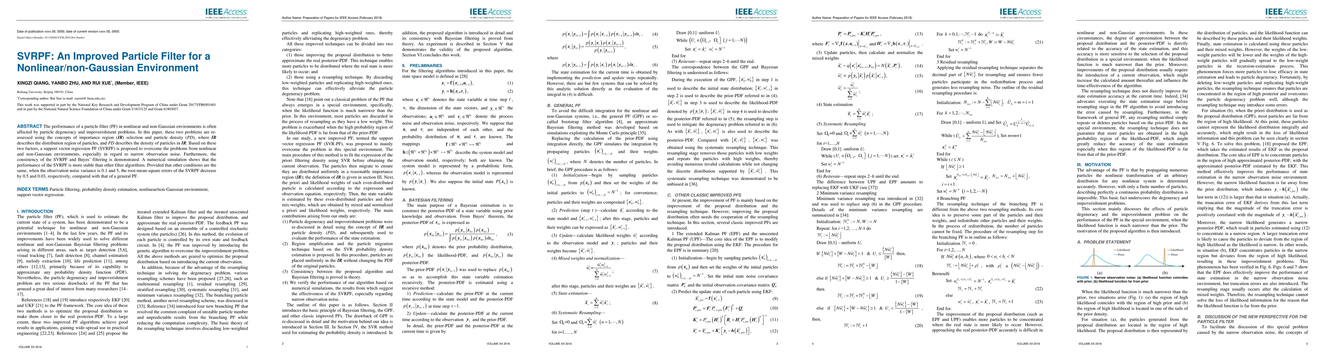 A new particle filter algorithm called SVRPF is proposed to improve performance in nonlinear and non-Gaussian environments, reducing errors by up to 0.5 compared to traditional methods.
