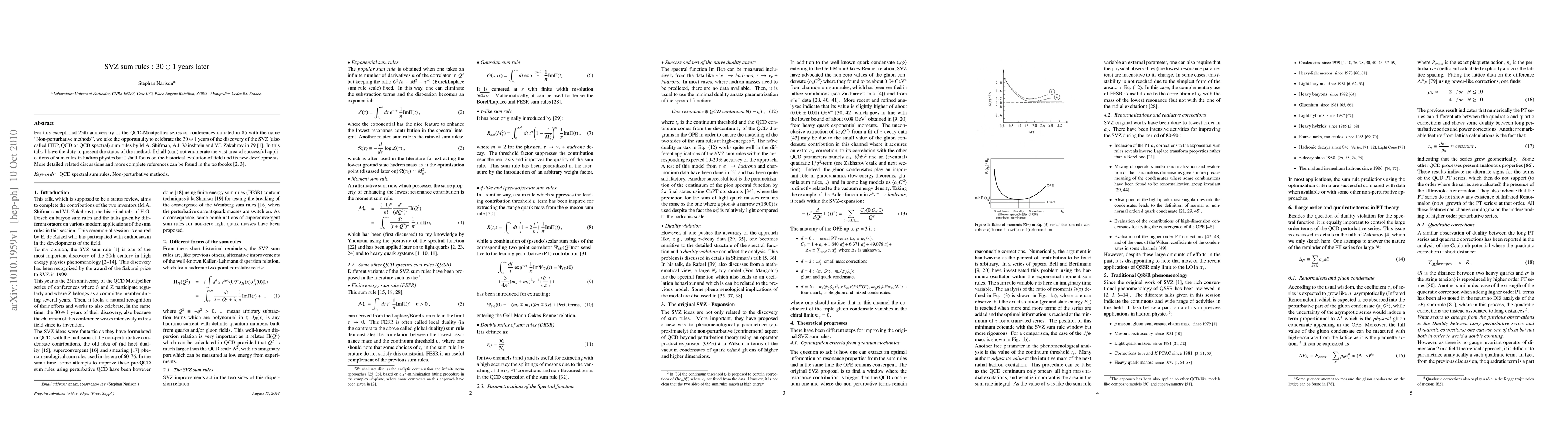 For this exceptional 25th anniversary of the QCD-Montpellier series of conferences initiated in 85 with the name "Non-perturbative methods", we take the opportunuity to celebrate the 30 + 1 years of the discovery of the SVZ (also called ITEP, QCD or QCD spectral) sum rules by M.A. Shifman, A.I. Vainshtein and V.I. Zakahrov in 79 [1]. In this talk, I have the duty to present the status of the method. I shall (can) not enumerate the vast area of successful applications of sum rules in hadron physics but I shall focus on the historical evolution of field and its new developments. More detailed related discussions and more complete references can be found in the textbooks [2,3].
