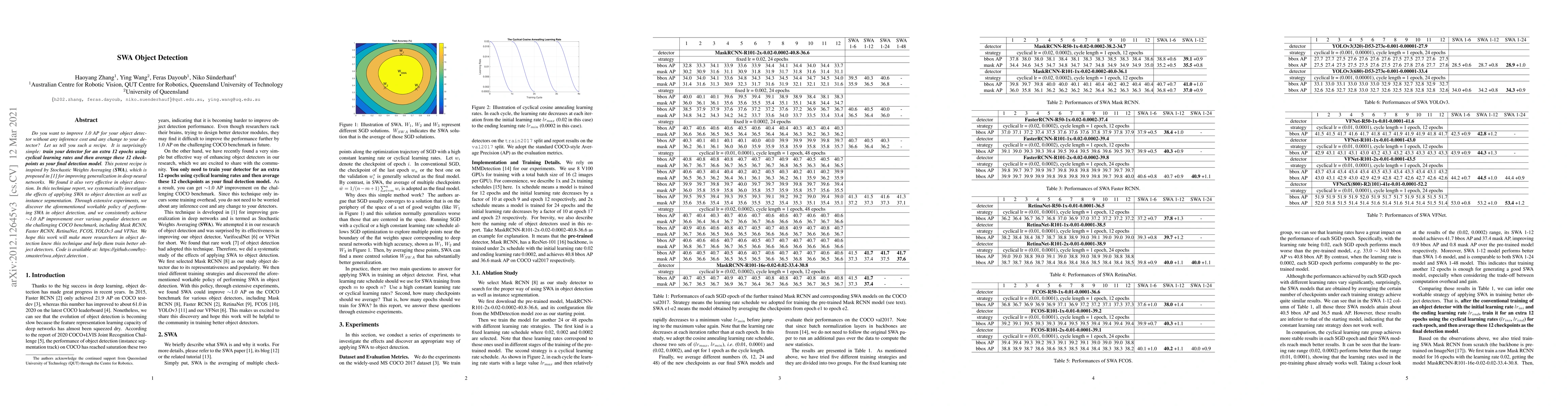 This paper proposes a technique using Stochastic Weights Averaging (SWA) to improve object detection models by training for an additional 12 epochs with cyclical learning rates and averaging the resulting checkpoints. This method achieves a consistent $\sim$1.0 AP improvement across various detectors on the COCO benchmark without additional inference costs or changes to the detector architecture.