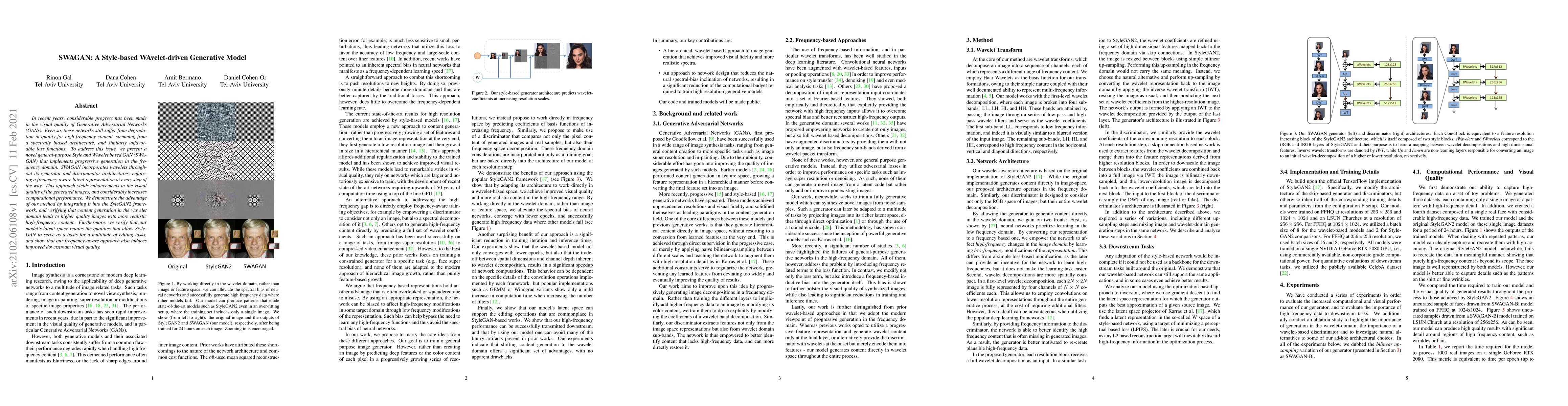 The research introduces SWAGAN, a Style and Wavelet-driven GAN that improves image generation quality, especially for high-frequency content. By using wavelets in its architecture, SWAGAN enhances visual fidelity and computational performance, while maintaining StyleGAN's latent space properties for editing tasks.
