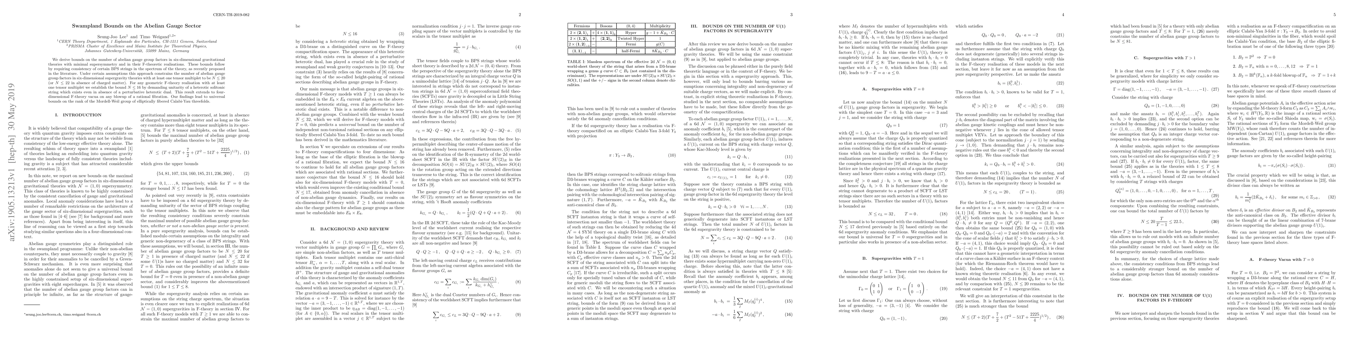 Researchers establish bounds on abelian gauge group factors in six-dimensional gravitational theories, with limits of N ≤ 20 for minimal supersymmetry and N ≤ 16 for geometric F-theory realisations.
