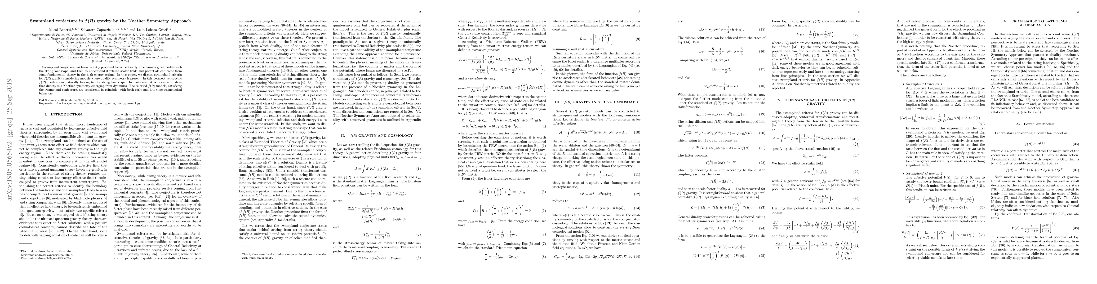Swampland conjecture has been recently proposed to connect early time cosmological models with the string landscape, and then to understand if related scalar fields and potentials can come from some fundamental theory in the high energy regime. In this paper, we discuss swampland criteria for $f(R)$ gravity considering models where duality symmetry is present. In this perspective, specific $f(R)$ models can naturally belong to the string landscape. In particular, it is possible to show that duality is a Noether symmetry emerging from dynamics. The selected $f(R)$ models, satisfying the swampland conjecture, are consistent, in principle, with both early and late-time cosmological behaviors.