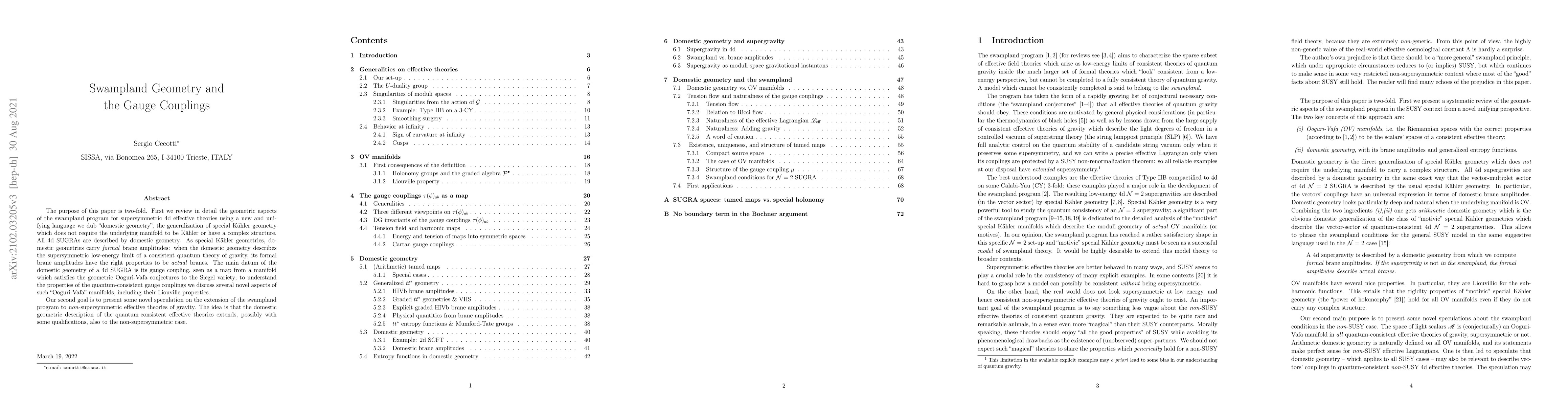 This paper explores the geometric aspects of the swampland program using a new framework called domestic geometry, which generalizes special Kähler geometry. It focuses on the properties of gauge couplings in 4d SUGRAs and speculates on extending this geometric description to non-supersymmetric effective theories of gravity.