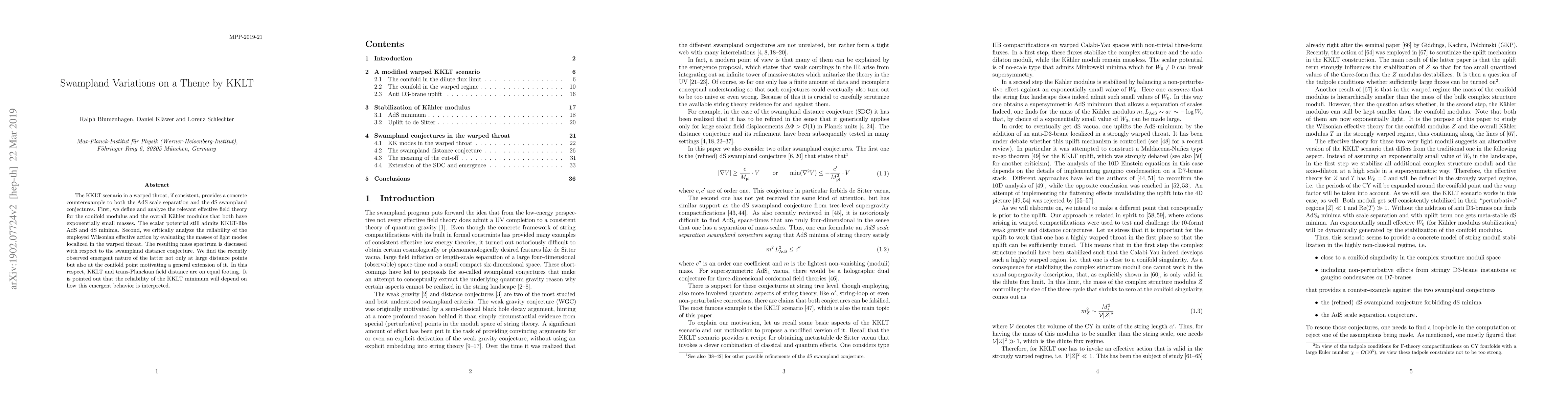 The KKLT scenario in a warped throat, if consistent, provides a concrete counterexample to both the AdS scale separation and the dS swampland conjectures. First, we define and analyze the relevant effective field theory for the conifold modulus and the overall Kaehler modulus that both have exponentially small masses. The scalar potential still admits KKLT-like AdS and dS minima. Second, we critically analyze the reliability of the employed Wilsonian effective action by evaluating the masses of light modes localized in the warped throat. The resulting mass spectrum is discussed with respect to the swampland distance conjecture. We find the recently observed emergent nature of the latter not only at large distance points but also at the conifold point motivating a general extension of it. In this respect, KKLT and trans-Planckian field distance are on equal footing. It is pointed out that the reliability of the KKLT minimum will depend on how this emergent behavior is interpreted.