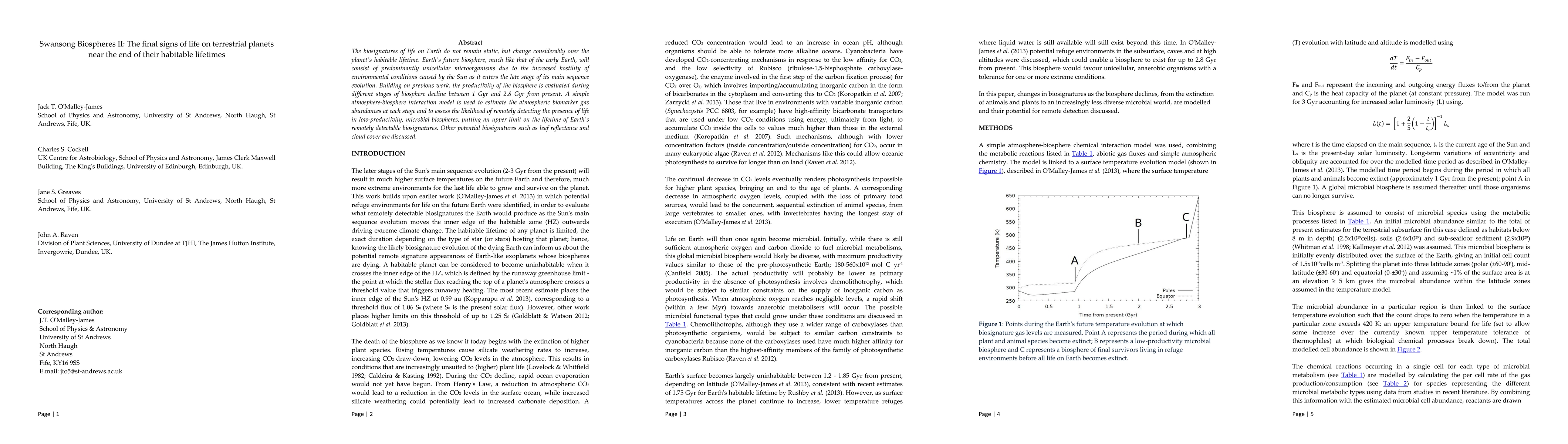 The biosignatures of life on Earth do not remain static, but change considerably over the planet's habitable lifetime. Earth's future biosphere, much like that of the early Earth, will consist of predominantly unicellular microorganisms due to the increased hostility of environmental conditions caused by the Sun as it enters the late stage of its main sequence evolution. Building on previous work, the productivity of the biosphere is evaluated during different stages of biosphere decline between 1 Gyr and 2.8 Gyr from present. A simple atmosphere-biosphere interaction model is used to estimate the atmospheric biomarker gas abundances at each stage and to assess the likelihood of remotely detecting the presence of life in low-productivity, microbial biospheres, putting an upper limit on the lifetime of Earth's remotely detectable biosignatures. Other potential biosignatures such as leaf reflectance and cloud cover are discussed.