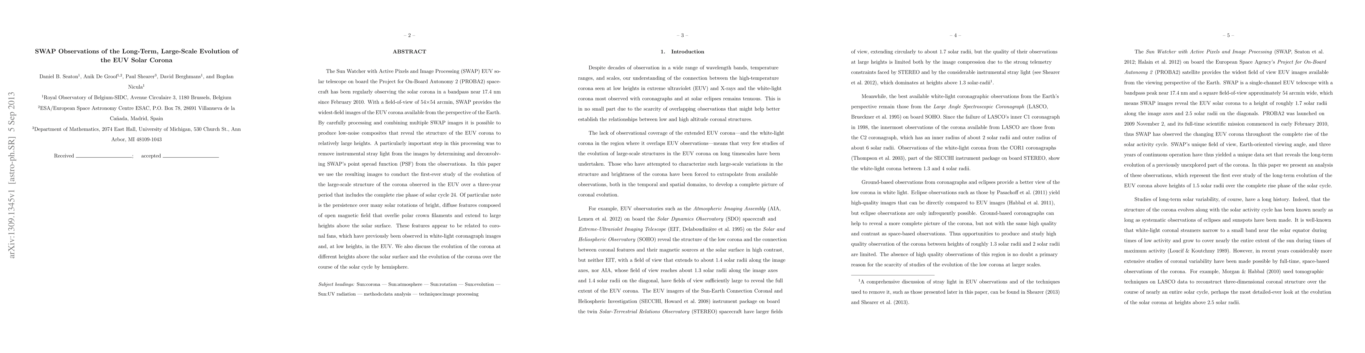 This paper uses SWAP telescope observations to study the long-term evolution of the EUV solar corona over three years, including the rise of solar cycle 24. It reveals persistent bright features composed of open magnetic fields extending high above the solar surface, related to coronal fans, and discusses the corona's evolution at different heights and by hemisphere.