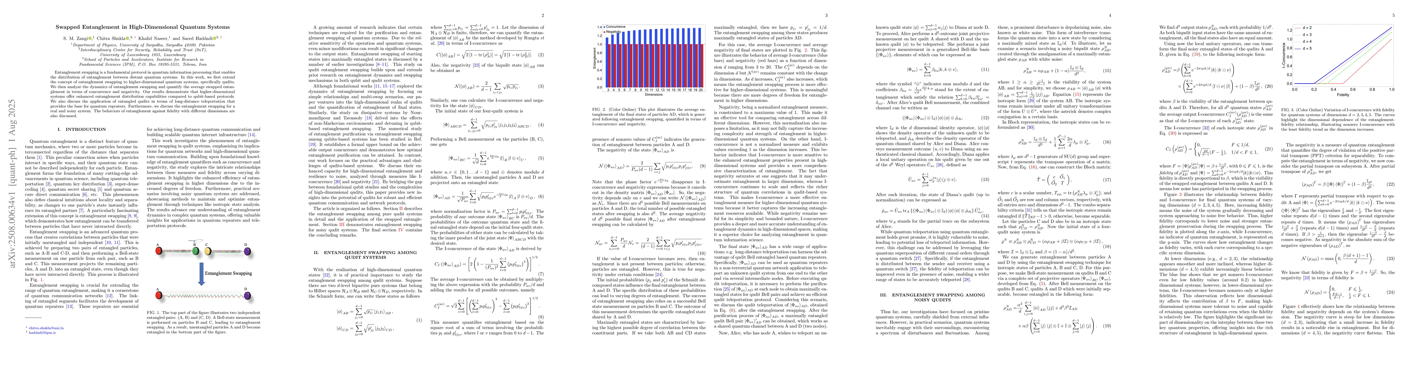 Entanglement swapping is a fundamental protocol in quantum information processing that enables the distribution of entanglement between distant quantum systems. In this work, we first extend the concept of entanglement swapping to higher-dimensional quantum systems, specifically qudits. We then analyze the dynamics of entanglement swapping and quantify the average swapped entanglement in terms of concurrence and negativity. Our results demonstrate that higher-dimensional systems offer enhanced entanglement distribution capabilities compared to qubit-based protocols. We also discuss the application of entangled qudits in terms of long-distance teleportation that provides the base for quantum repeaters. Furthermore, we discuss the entanglement swapping for a real and noisy system. The behaviors of entanglement against fidelity with different dimensions are also discussed.