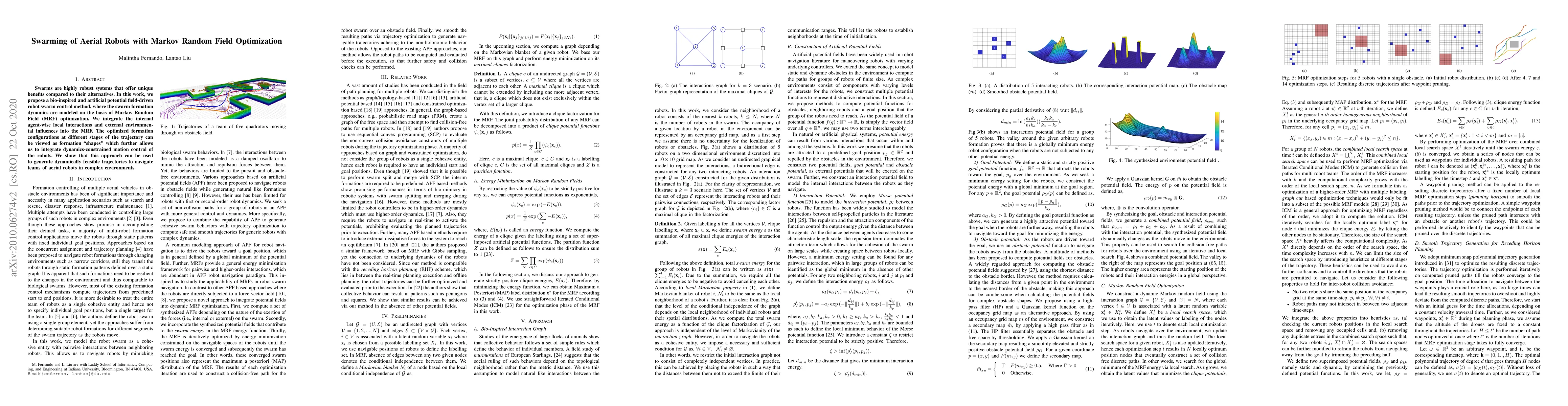 Researchers propose a bio-inspired method to control swarms of aerial robots using Markov Random Field optimization, enabling dynamically feasible trajectories in complex environments.