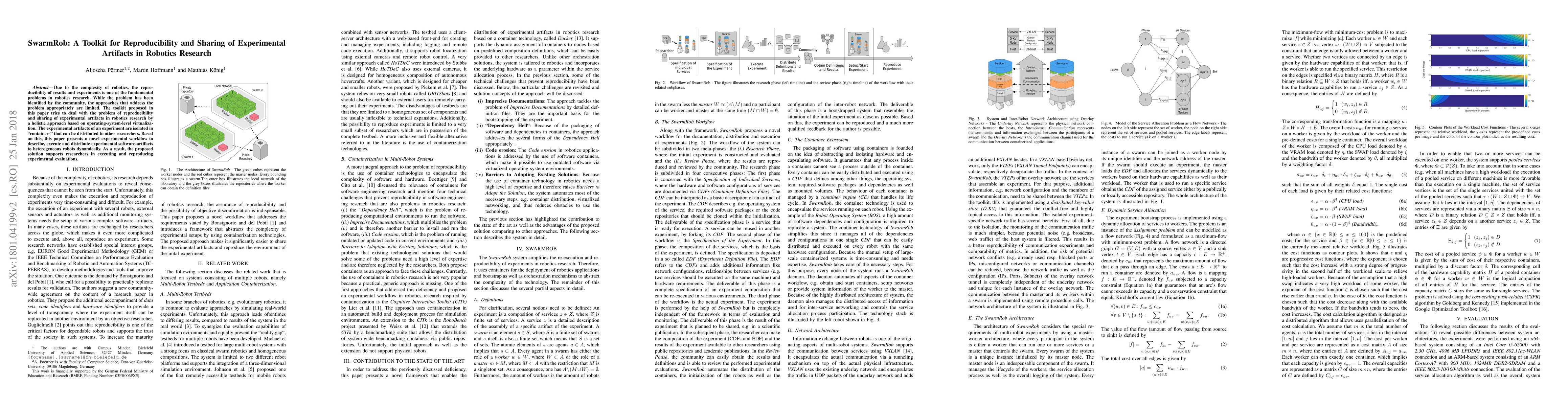 Due to the complexity of robotics, the reproducibility of results and experiments is one of the fundamental problems in robotics research. While the problem has been identified by the community, the approaches that address the problem appropriately are limited. The toolkit proposed in this paper tries to deal with the problem of reproducibility and sharing of experimental artifacts in robotics research by a holistic approach based on operating-system-level virtualization. The experimental artifacts of an experiment are isolated in "containers" that can be distributed to other researchers. Based on this, this paper presents a novel experimental workflow to describe, execute and distribute experimental software-artifacts to heterogeneous robots dynamically. As a result, the proposed solution supports researchers in executing and reproducing experimental evaluations.