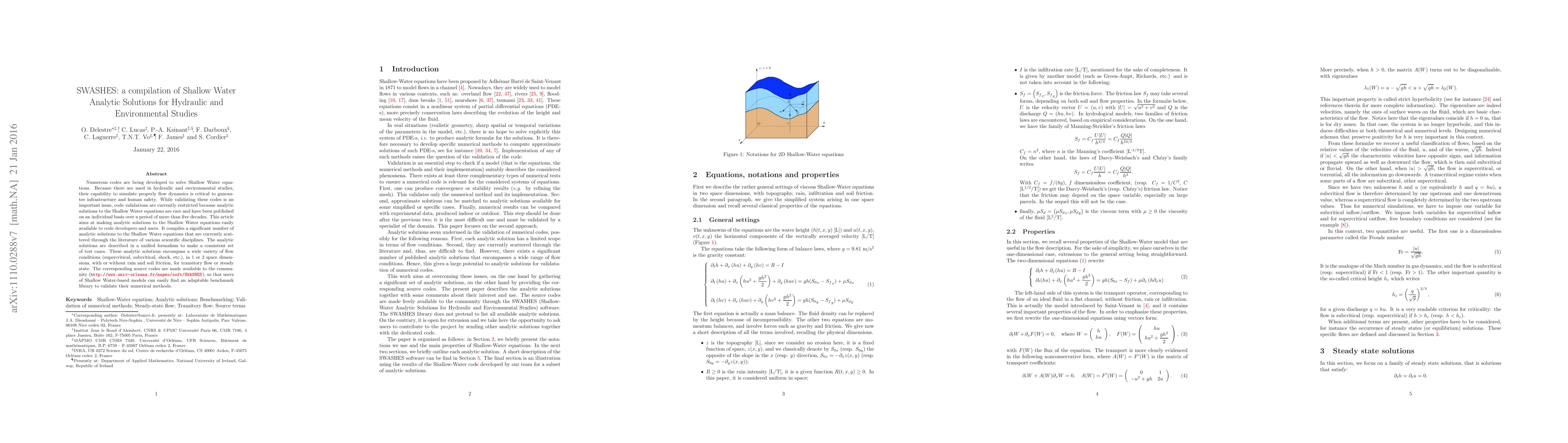 Numerous codes are being developed to solve Shallow Water equations. Because there are used in hydraulic and environmental studies, their capability to simulate properly flow dynamics is critical to guarantee infrastructure and human safety. While validating these codes is an important issue, code validations are currently restricted because analytic solutions to the Shallow Water equations are rare and have been published on an individual basis over a period of more than five decades. This article aims at making analytic solutions to the Shallow Water equations easily available to code developers and users. It compiles a significant number of analytic solutions to the Shallow Water equations that are currently scattered through the literature of various scientific disciplines. The analytic solutions are described in a unified formalism to make a consistent set of test cases. These analytic solutions encompass a wide variety of flow conditions (supercritical, subcritical, shock, etc.), in 1 or 2 space dimensions, with or without rain and soil friction, for transitory flow or steady state. The corresponding source codes are made available to the community (http://www.univ-orleans.fr/mapmo/soft/SWASHES), so that users of Shallow Water-based models can easily find an adaptable benchmark library to validate their numerical methods.