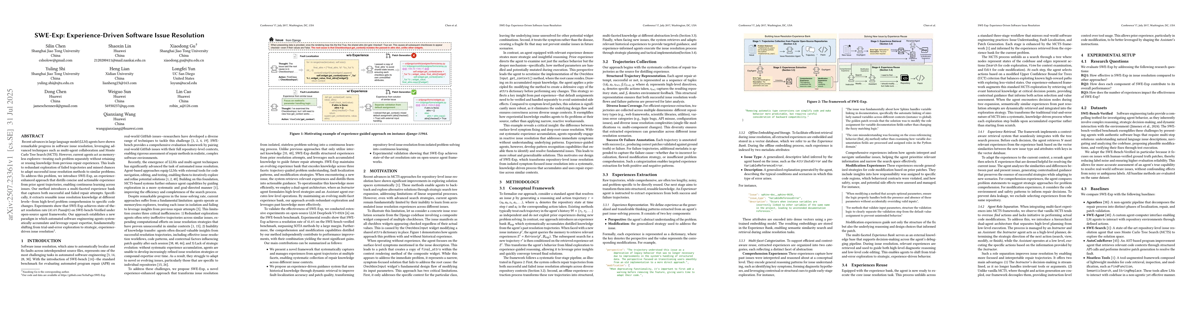Recent advances in large language model (LLM) agents have shown remarkable progress in software issue resolution, leveraging advanced techniques such as multi-agent collaboration and Monte Carlo Tree Search (MCTS). However, current agents act as memoryless explorers - treating each problem separately without retaining or reusing knowledge from previous repair experiences. This leads to redundant exploration of failed trajectories and missed chances to adapt successful issue resolution methods to similar problems. To address this problem, we introduce SWE-Exp, an experience - enhanced approach that distills concise and actionable experience from prior agent trajectories, enabling continuous learning across issues. Our method introduces a multi-faceted experience bank that captures both successful and failed repair attempts. Specifically, it extracts reusable issue resolution knowledge at different levels - from high-level problem comprehension to specific code changes. Experiments show that SWE-Exp achieves state-of-the-art resolution rate (41.6% Pass@1) on SWE-bench-Verified under open-source agent frameworks. Our approach establishes a new paradigm in which automated software engineering agents systematically accumulate and leverage repair expertise, fundamentally shifting from trial-and-error exploration to strategic, experience-driven issue resolution.