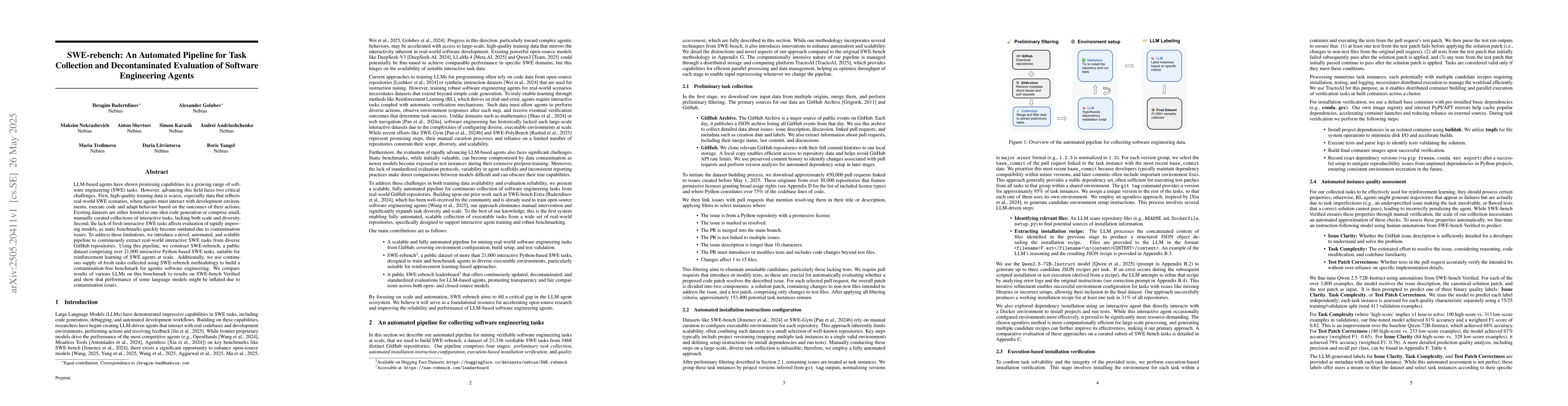 Researchers introduced SWE-rebench, a public dataset of over 21,000 interactive Python-based software engineering tasks to improve the evaluation of language models in this field, highlighting the need for fresh and contamination-free benchmarks.