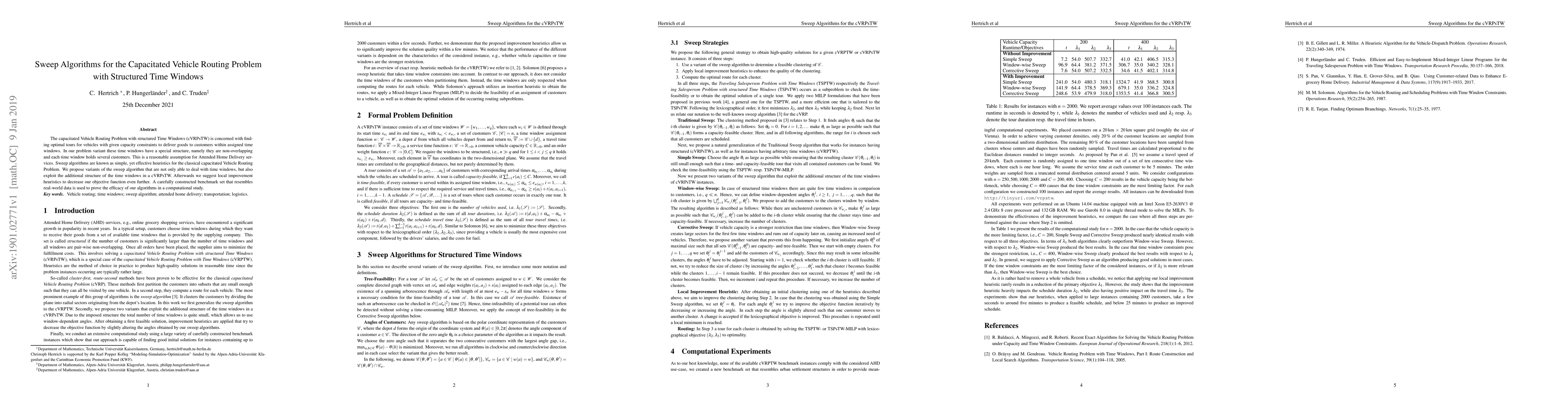This paper proposes sweep algorithms for the capacitated Vehicle Routing Problem with structured Time Windows (cVRPsTW), focusing on delivering goods to customers within non-overlapping, multi-customer time windows. It introduces variants of the sweep algorithm that leverage the time window structure and applies local improvement heuristics to enhance performance, validated through a computational study using a real-world data benchmark.