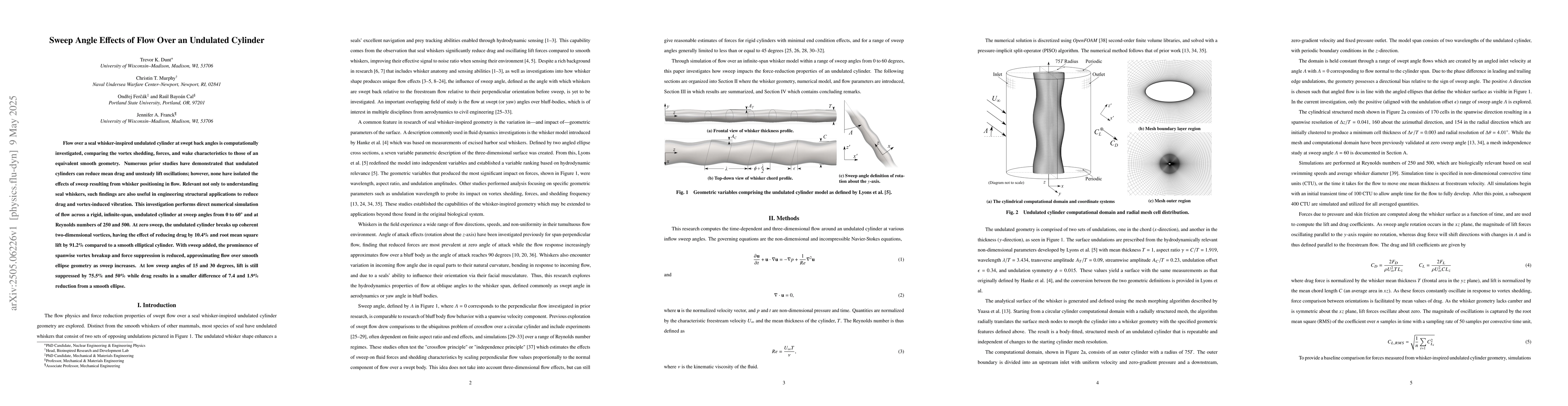 The study uses computer simulations to show that undulated cylinders inspired by seal whiskers can reduce drag and vibrations, especially at low sweep angles. Increasing sweep angles diminish these benefits, making the flow resemble that over smooth shapes.