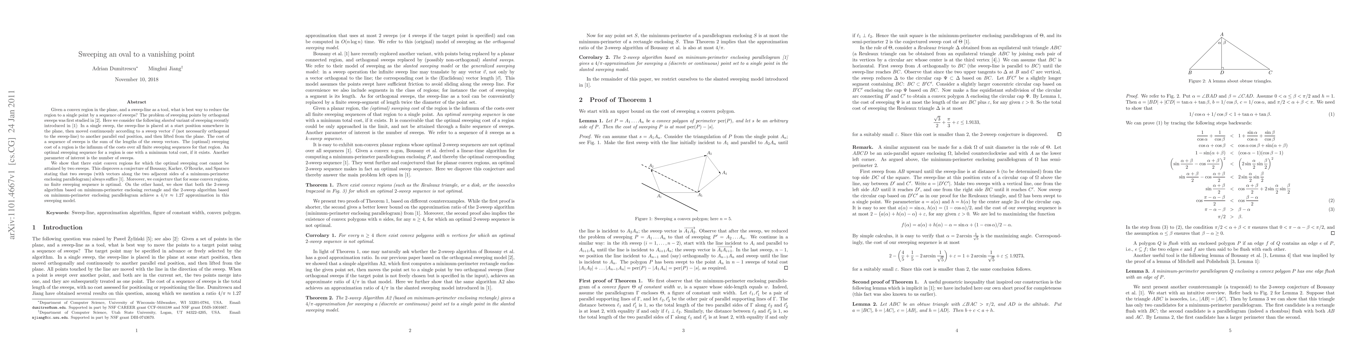 Given a convex region in the plane, and a sweep-line as a tool, what is best way to reduce the region to a single point by a sequence of sweeps? The problem of sweeping points by orthogonal sweeps was first studied in [2]. Here we consider the following \emph{slanted} variant of sweeping recently introduced in [1]: In a single sweep, the sweep-line is placed at a start position somewhere in the plane, then moved continuously according to a sweep vector $\vec v$ (not necessarily orthogonal to the sweep-line) to another parallel end position, and then lifted from the plane. The cost of a sequence of sweeps is the sum of the lengths of the sweep vectors. The (optimal) sweeping cost of a region is the infimum of the costs over all finite sweeping sequences for that region. An optimal sweeping sequence for a region is one with a minimum total cost, if it exists. Another parameter of interest is the number of sweeps. We show that there exist convex regions for which the optimal sweeping cost cannot be attained by two sweeps. This disproves a conjecture of Bousany, Karker, O'Rourke, and Sparaco stating that two sweeps (with vectors along the two adjacent sides of a minimum-perimeter enclosing parallelogram) always suffice [1]. Moreover, we conjecture that for some convex regions, no finite sweeping sequence is optimal. On the other hand, we show that both the 2-sweep algorithm based on minimum-perimeter enclosing rectangle and the 2-sweep algorithm based on minimum-perimeter enclosing parallelogram achieve a $4/\pi \approx 1.27$ approximation in this sweeping model.