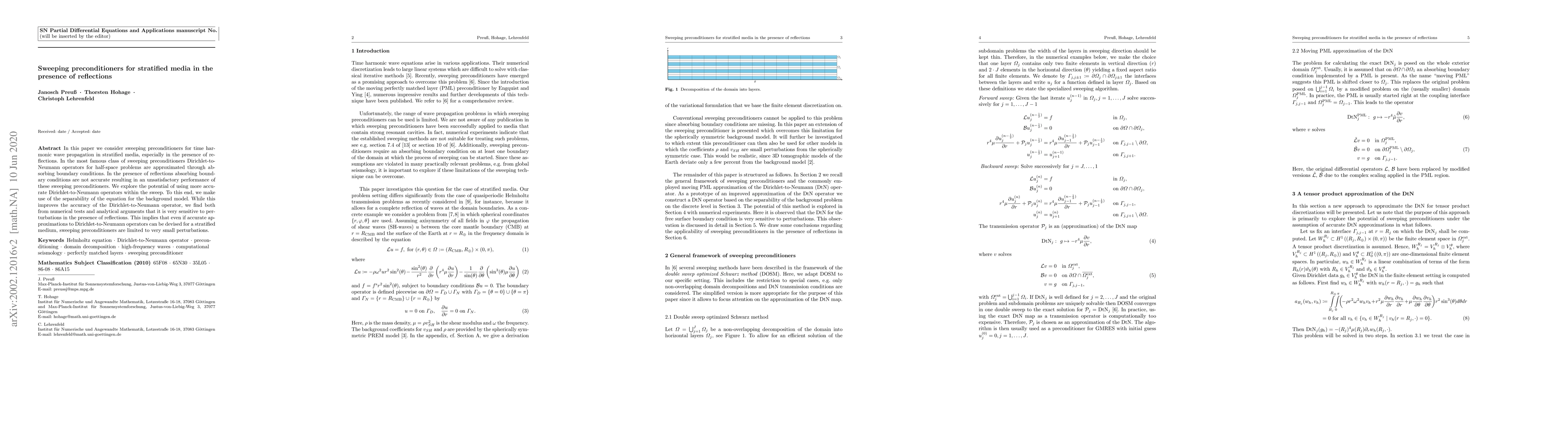 This paper investigates the use of sweeping preconditioners for time harmonic wave propagation in stratified media, focusing on scenarios with reflections. While improved Dirichlet-to-Neumann operators enhance accuracy, they remain sensitive to perturbations, limiting the effectiveness of sweeping preconditioners in the presence of reflections.