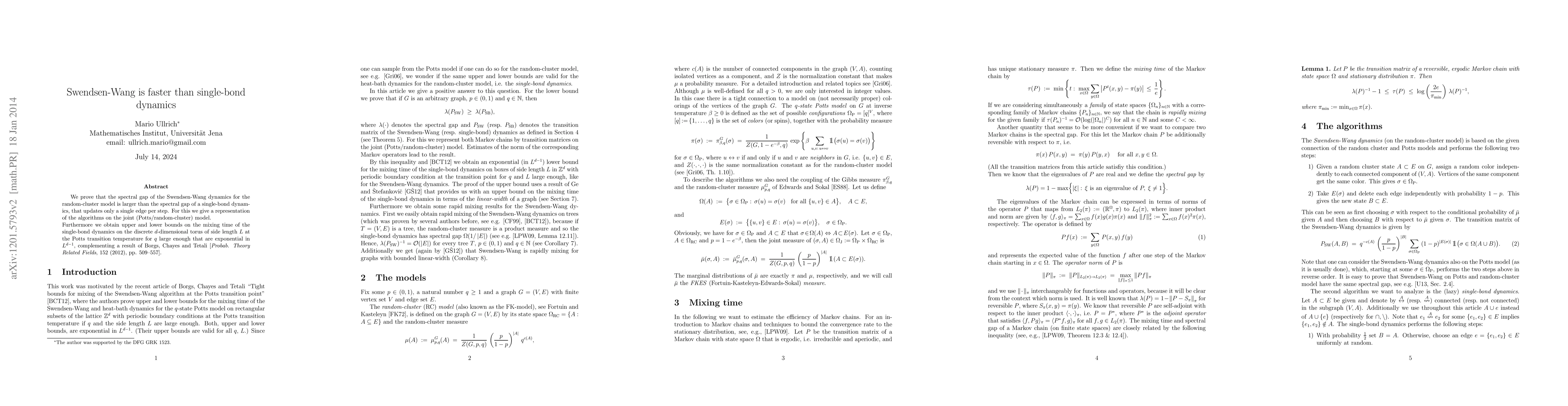 This paper demonstrates that the Swendsen-Wang dynamics has a larger spectral gap compared to single-bond dynamics in the random-cluster model, indicating faster convergence. It also provides bounds on the mixing time for single-bond dynamics, showing exponential dependence on the system size.