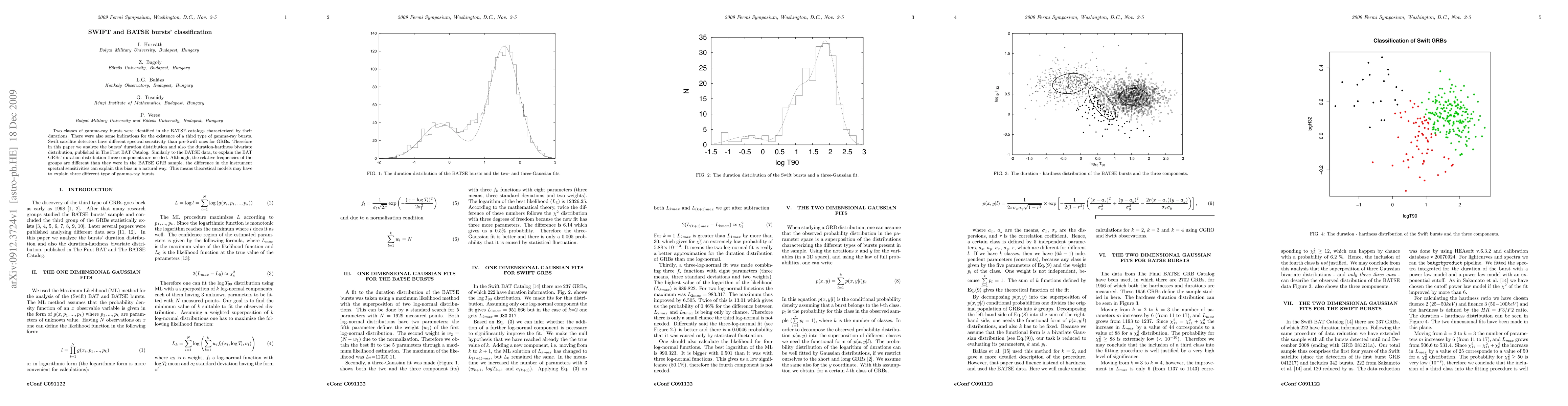 This paper classifies gamma-ray bursts (GRBs) into two main duration-based classes identified in BATSE catalogs, with hints of a third type. It analyzes Swift satellite data, noting different spectral sensitivities compared to pre-Swift detectors, and finds that three components are needed to explain the duration distribution, suggesting theoretical models should account for three distinct GRB types.