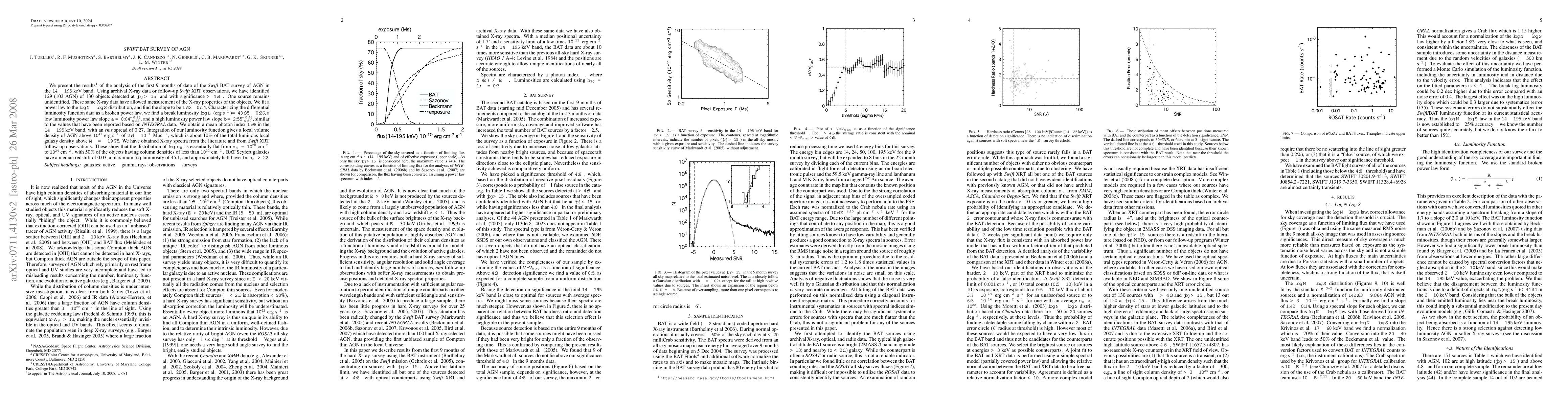 The Swift BAT Survey identifies 129 AGN in the 14-195 keV band, with 103 confirmed, and characterizes their X-ray properties, finding a differential luminosity function break at log L_* = 43.85 erg/s. The survey estimates a local AGN volume density of 2.4x10^{-3}/Mpc^3 above 10^{41} erg/s.