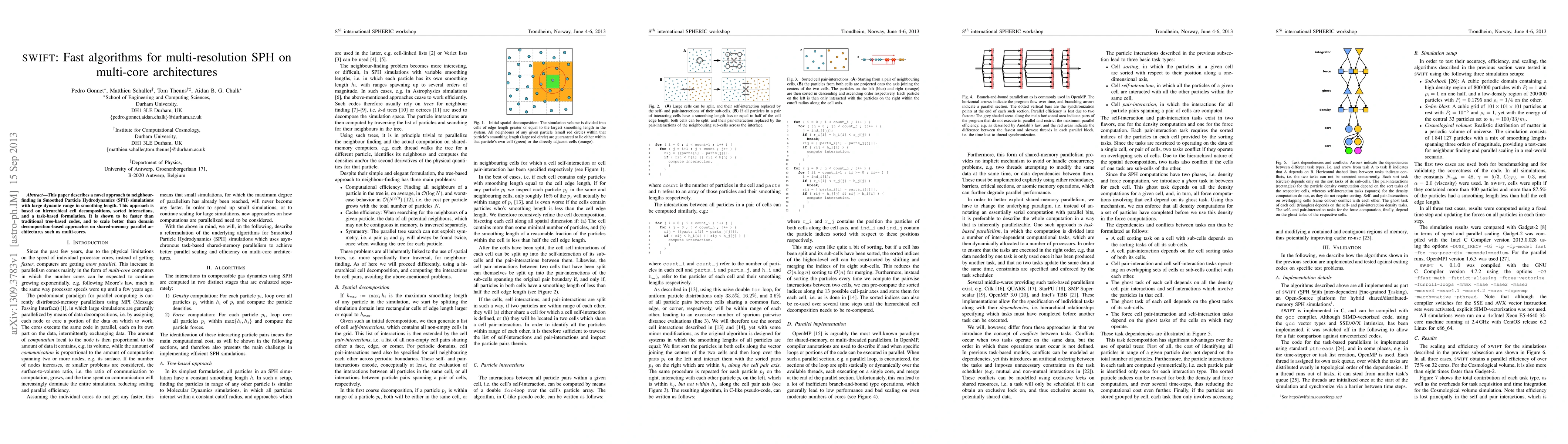 This paper describes a novel approach to neighbour-finding in Smoothed Particle Hydrodynamics (SPH) simulations with large dynamic range in smoothing length. This approach is based on hierarchical cell decompositions, sorted interactions, and a task-based formulation. It is shown to be faster than traditional tree-based codes, and to scale better than domain decomposition-based approaches on shared-memory parallel architectures such as multi-cores.