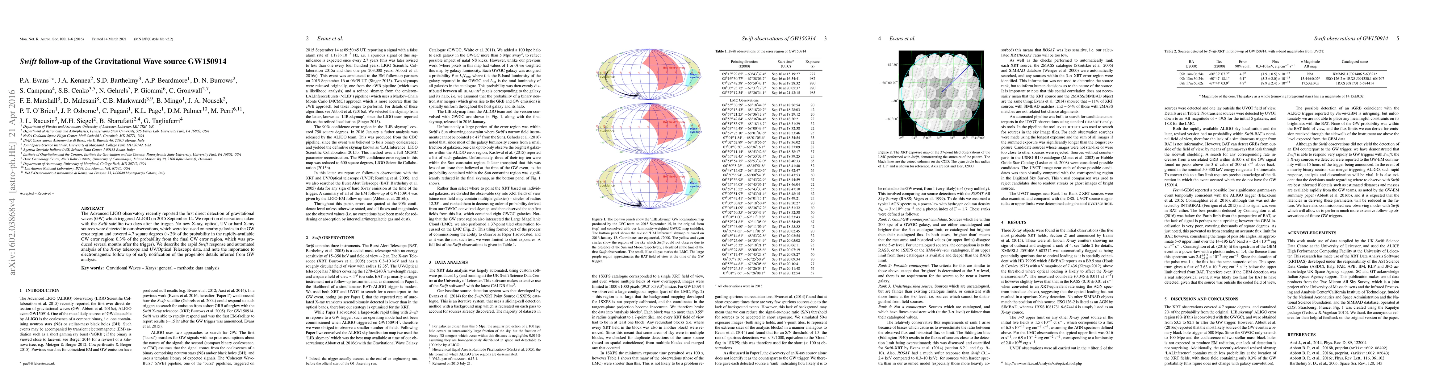 The Swift satellite did not detect new X-ray sources near GW150914 two days after its detection, contradicting expectations for electromagnetic follow-up of gravitational wave events.