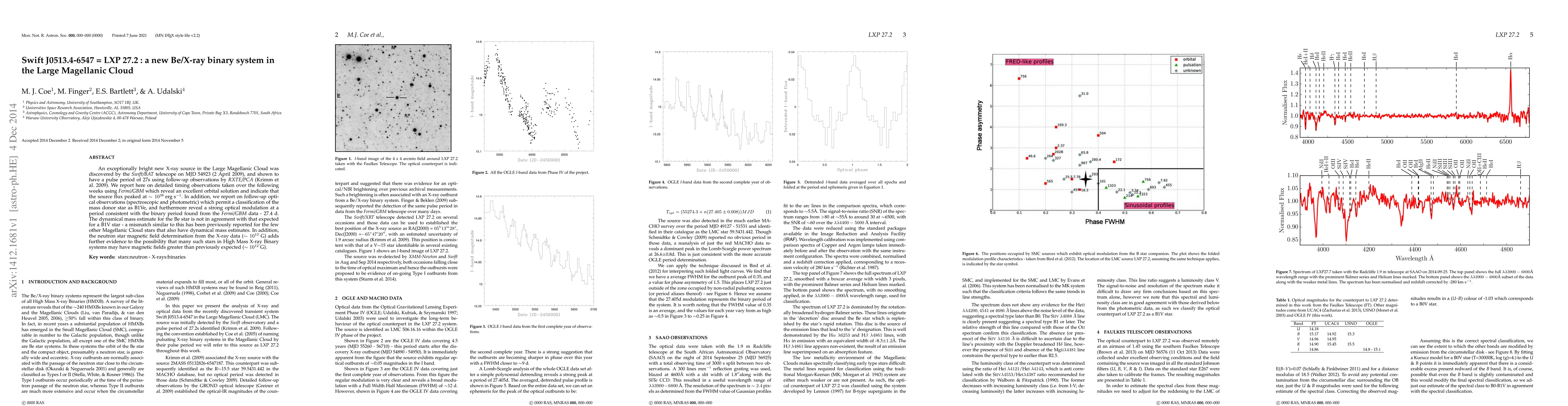 An exceptionally bright new X-ray source in the Large Magellanic Cloud was discovered by the Swift/BAT telescope on MJD 54923 (2 April 2009), and shown to have a pulse period of 27s using follow-up observations by RXTE/PCA. We report here on detailed timing observations taken over the following weeks using Fermi/GBM which reveal an excellent orbital solution and indicate that the source flux peaked at $\sim10^{38}$ erg s$^{-1}$. In addition, we report on follow-up optical observations (spectroscopic and photometric) which permit a classification of the mass donor star as B1Ve, and furthermore reveal a strong optical modulation at a period consistent with the binary period found from the Fermi/GBM data - 27.4 d. The dynamical mass estimate for the Be star is not in agreement with that expected for a B1V star - a mismatch similar to this has been previously reported for the few other Magellanic Cloud stars that also have dynamical mass estimates. In addition, the neutron star magnetic field determination from the X-ray data ($\sim10^{13}$ G) adds further evidence to the possibility that many such stars in High Mass X-ray Binary systems may have magnetic fields greater than previously expected ($\sim10^{12}$ G).