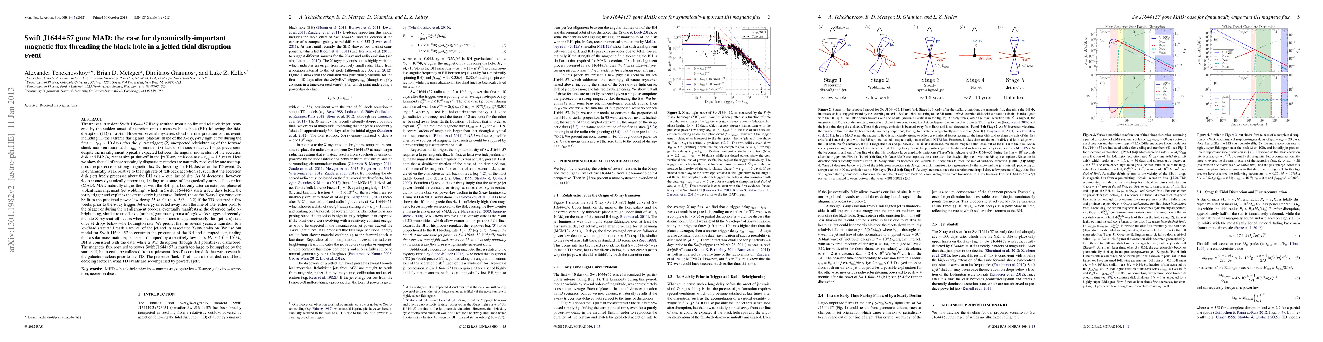 This paper proposes that the unusual transient Swift J1644+57, resulting from a tidal disruption event, is powered by a magnetically-arrested disk (MAD) formed due to dynamically important magnetic flux threading the black hole. The MAD explains the event's erratic early light curve, lack of jet precession, and eventual jet shut-off, suggesting a solar-mass star disrupted by a relatively low-mass black hole.