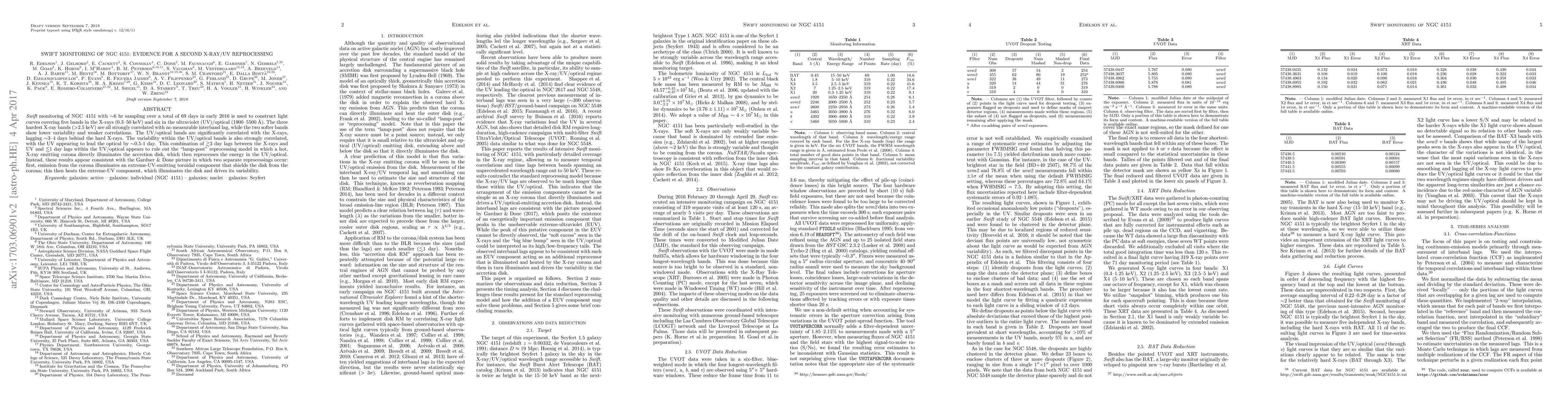 This study uses Swift satellite observations of NGC 4151 to detect significant correlations between X-ray and UV/optical light curves, revealing a complex reprocessing mechanism. The findings suggest two stages of reprocessing, refuting the "lamp-post" model and supporting a model where a corona first heats an intermediate toroidal component before illuminating the accretion disk.