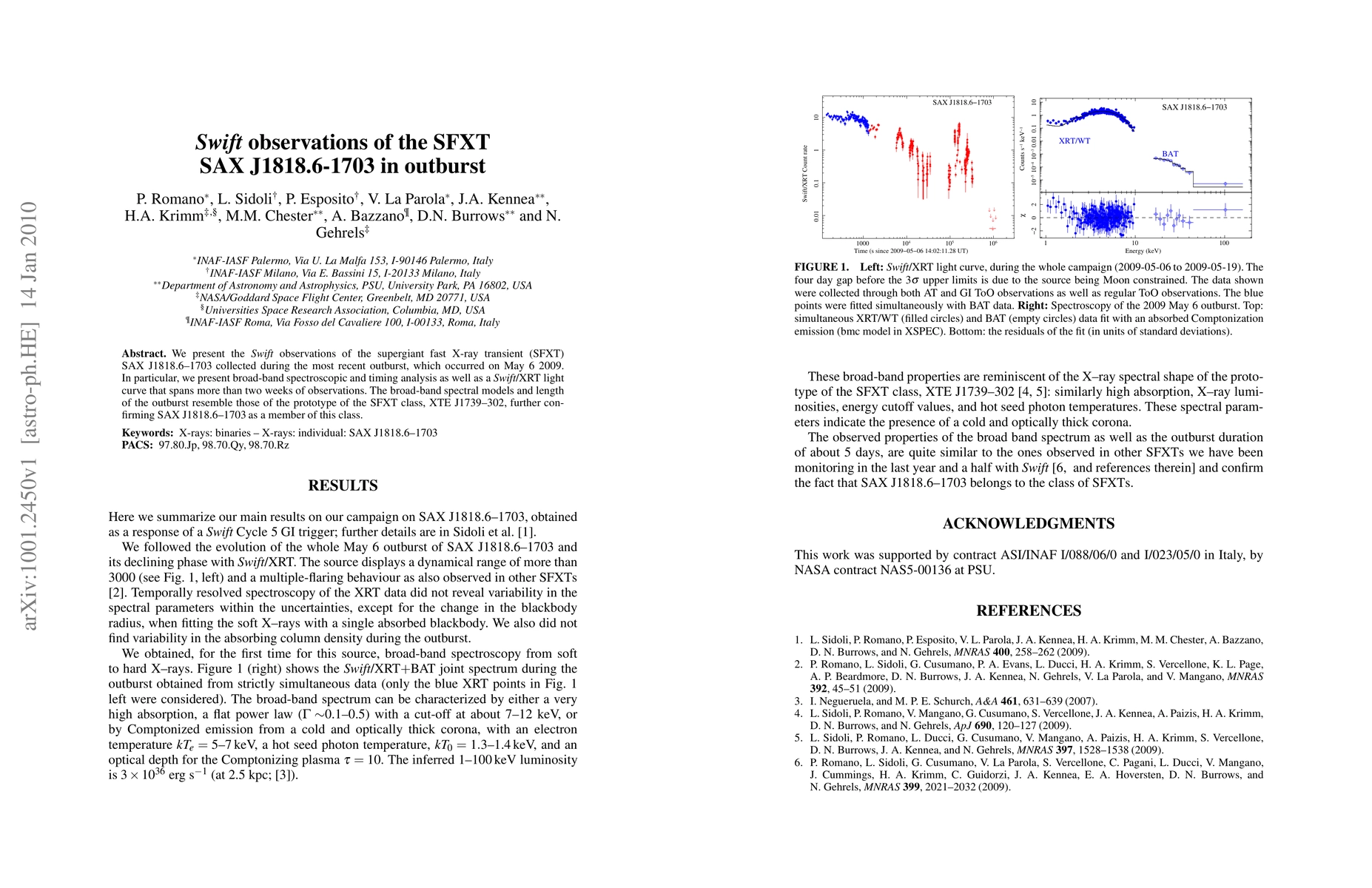 Researchers observed the supergiant fast X-ray transient SAX J1818.6-1703 in outburst, confirming it as a member of the SFXT class with characteristics similar to the prototype XTE J1739-302.