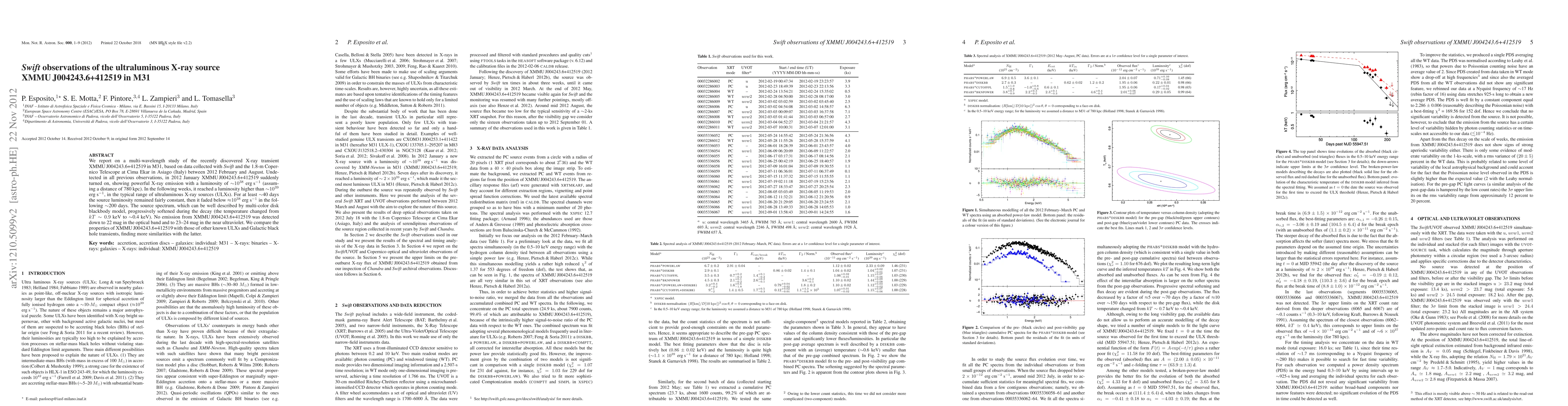 We report on a multi-wavelength study of the recently discovered X-ray transient XMMU J004243.6+412519 in M31, based on data collected with Swift and the 1.8-m Copernico Telescope at Cima Ekar in Asiago (Italy) between 2012 February and August. Undetected in all previous observations, in 2012 January XMMU J004243.6+412519 suddenly turned on, showing powerful X-ray emission with a luminosity of 1E+38 erg/s (assuming a distance of 780 kpc). In the following weeks, it reached a luminosity higher than 1E+39 erg/s, in the typical range of ultraluminous X-ray sources (ULXs). For at least 40 days the source luminosity remained fairly constant, then it faded below 1E+38 erg/s in the following 200 days. The source spectrum, which can be well described by multi-color disk blackbody model, progressively softened during the decay (the temperature changed from kT = 0.9 keV to 0.4 keV). No emission from XMMU J004243.6+412519 was detected down to 22 mag in the optical band and of 23-24 mag in the near ultraviolet. We compare the properties of XMMU J004243.6+412519 with those of other known ULXs and Galactic black hole transients, finding more similarities with the latter.