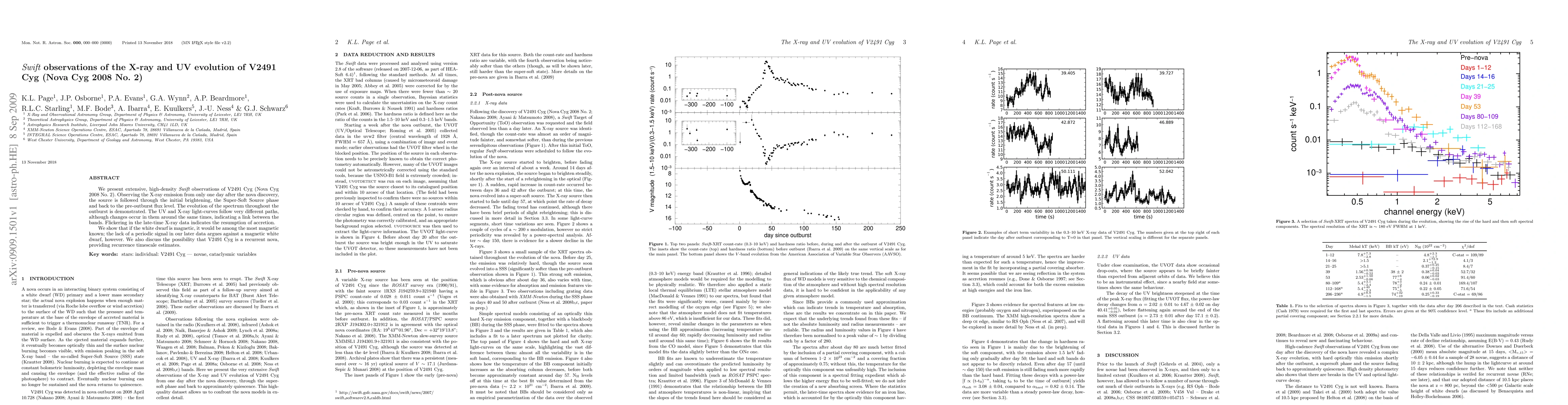 We present extensive, high-density Swift observations of V2491 Cyg (Nova Cyg 2008 No. 2). Observing the X-ray emission from only one day after the nova discovery, the source is followed through the initial brightening, the Super-Soft Source phase and back to the pre-outburst flux level. The evolution of the spectrum throughout the outburst is demonstrated. The UV and X-ray light-curves follow very different paths, although changes occur in them around the same times, indicating a link between the bands. Flickering in the late-time X-ray data indicates the resumption of accretion. We show that if the white dwarf is magnetic, it would be among the most magnetic known; the lack of a periodic signal in our later data argues against a magnetic white dwarf, however. We also discuss the possibility that V2491 Cyg is a recurrent nova, providing recurrence timescale estimates.