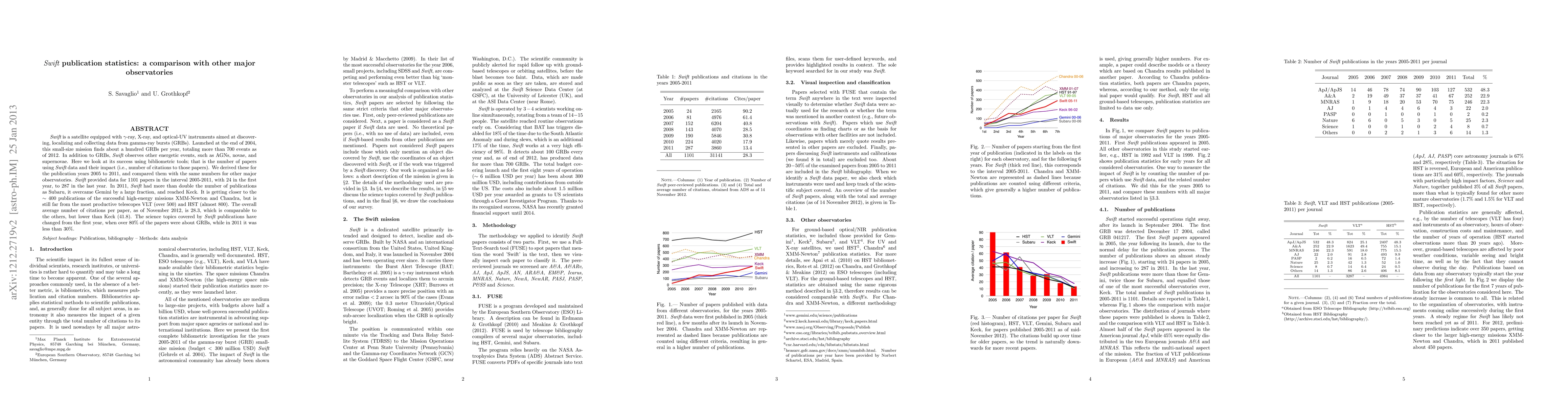 Swift observatory published 1101 papers between 2005-2011, comparable to some major telescopes like XMM-Newton and Chandra, but lagging behind others like HST.