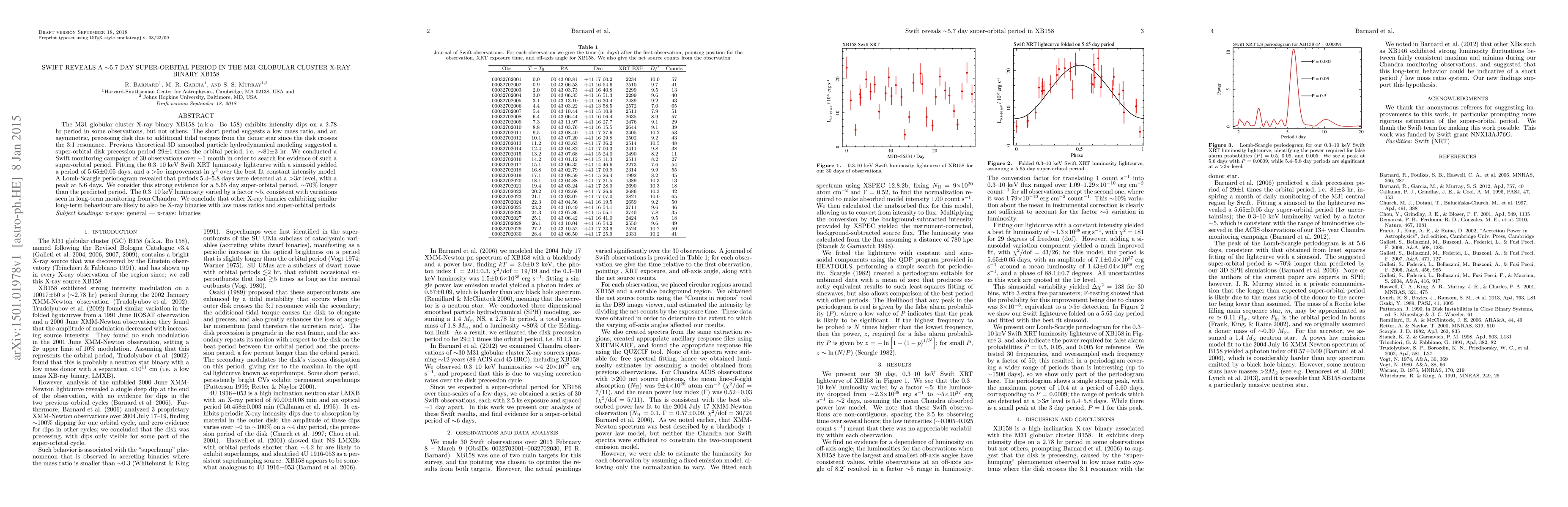 Researchers found a 5.7 day super-orbital period in the X-ray binary XB158 of the M31 globular cluster, contradicting previous predictions, using Swift's XRT luminosity lightcurve data.