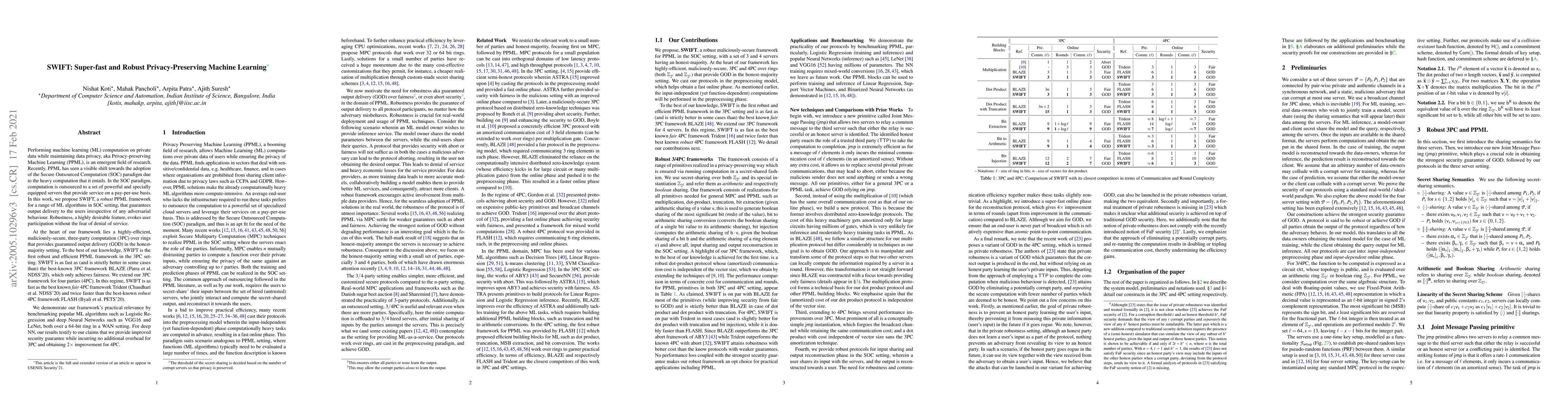 This paper proposes SWIFT, a robust Privacy-Preserving Machine Learning framework that guarantees secure output delivery for machine learning computations, outperforming existing frameworks in efficiency and security.