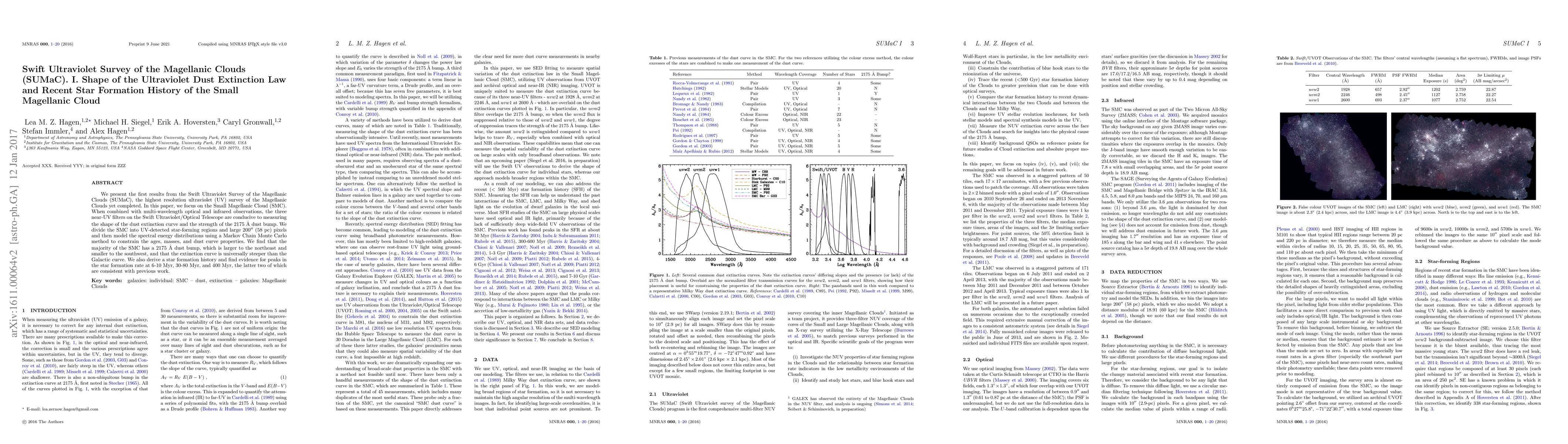The Swift Ultraviolet Survey of the Magellanic Clouds (SUMaC) reveals a steeper ultraviolet dust extinction curve in the Small Magellanic Cloud (SMC) compared to the Galactic curve, with a notable 2175Å dust bump varying across the SMC. The study also identifies star formation peaks at 6-10 Myr, 30-80 Myr, and 400 Myr, corroborating previous findings.