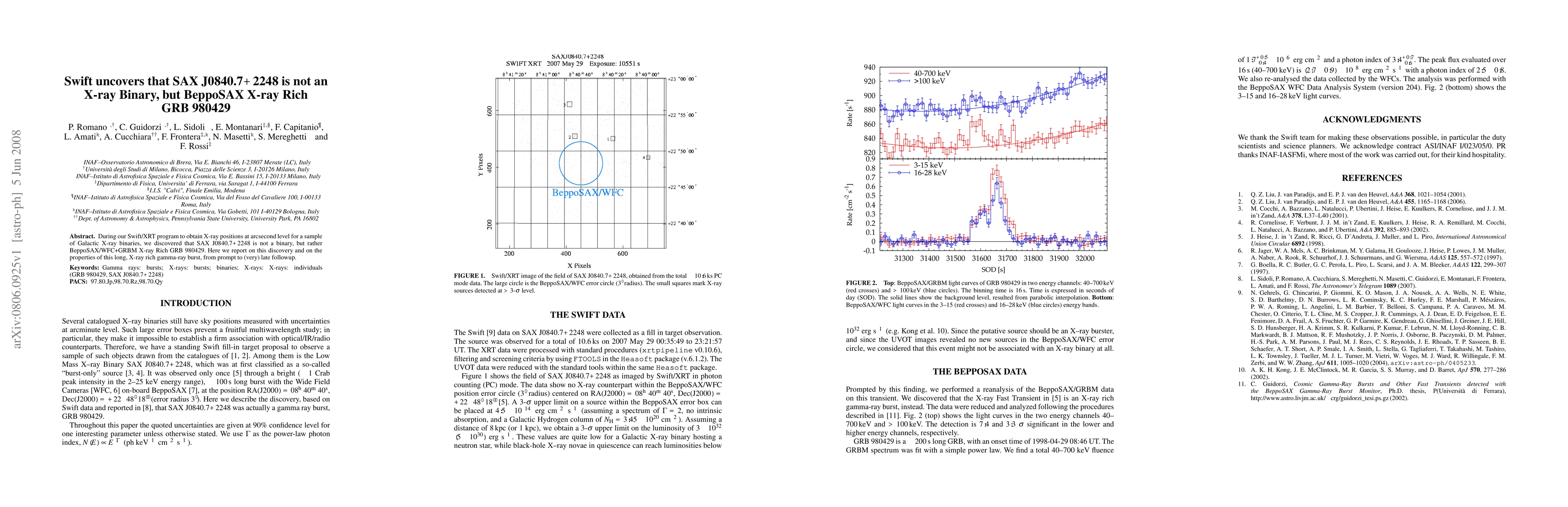 During our Swift/XRT program to obtain X-ray positions at arcsecond level for a sample of Galactic X-ray binaries, we discovered that SAX J0840.7+2248 is not a binary, but rather BeppoSAX/WFC+GRBM X-ray Rich GRB 980429. Here we report on this discovery and on the properties of this long, X-ray rich gamma-ray burst, from prompt to (very) late followup.