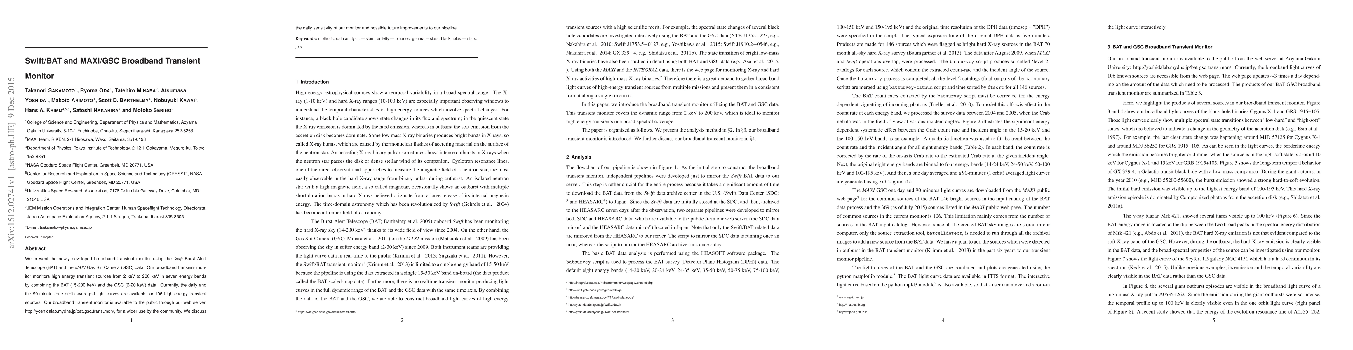 This paper introduces a new broadband transient monitor combining data from Swift/BAT and MAXI/GSC, which tracks high-energy transient sources across seven energy bands from 2 keV to 200 keV. The monitor provides publicly accessible daily and 90-minute averaged light curves for 106 sources, with plans for future enhancements.