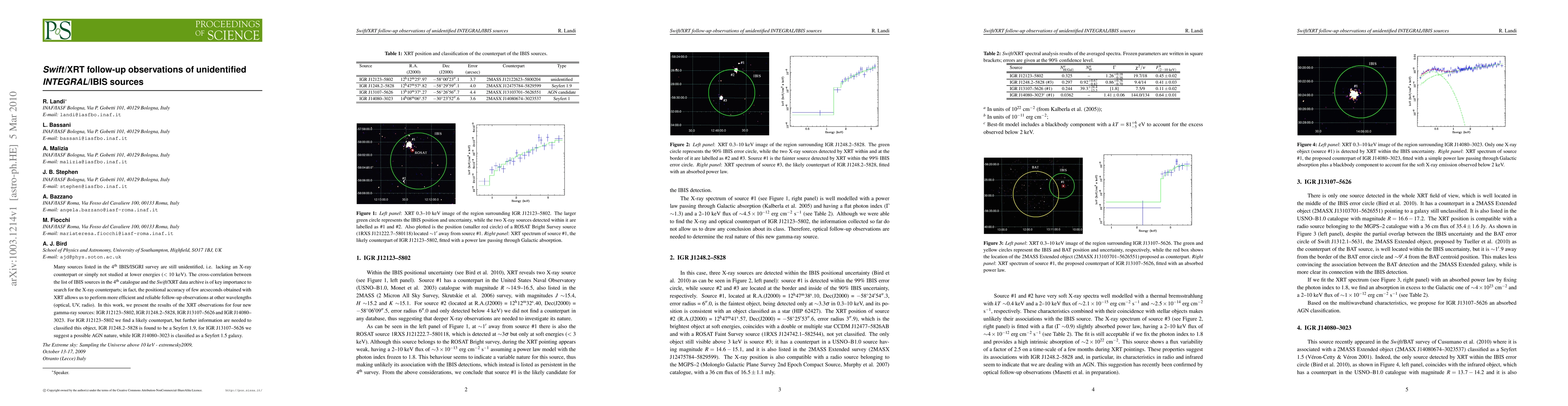 Many sources listed in the 4th IBIS/ISGRI survey are still unidentified, i.e. lacking an X-ray counterpart or simply not studied at lower energies (< 10 keV). The cross-correlation between the list of IBIS sources in the 4th catalogue and the Swift/XRT data archive is of key importance to search for the X-ray counterparts; in fact, the positional accuracy of few arcseconds obtained with XRT allows us to perform more efficient and reliable follow-up observations at other wavelengths (optical, UV, radio). In this work, we present the results of the XRT observations for four new gamma-ray sources: IGR J12123-5802, IGR J1248.2-5828, IGR J13107-5626 and IGR J14080-3023. For IGR J12123-5802 we find a likely counterpart, but further information are needed to classified this object, IGR J1248.2-5828 is found to be a Seyfert 1.9, for IGR J13107-5626 we suggest a possible AGN nature, while IGR J14080-3023 is classified as a Seyfert 1.5 galaxy.