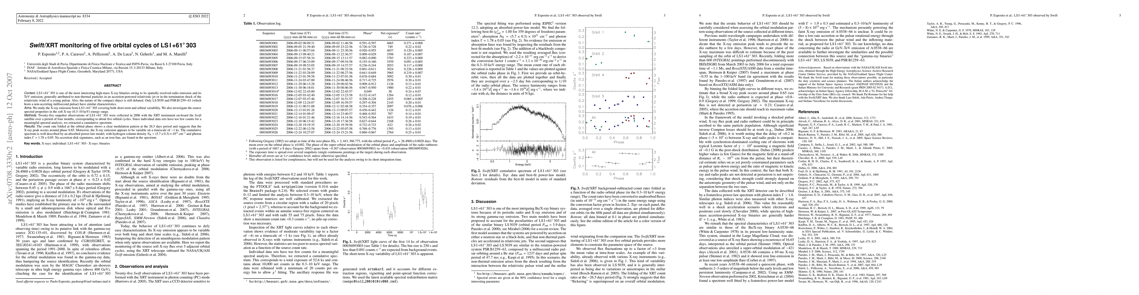 This study uses Swift/XRT data to monitor the X-ray emission of the high-mass X-ray binary LSI +61 303 over five orbital cycles, revealing significant orbital modulation and short-term variability. The cumulative spectrum fits an absorbed power-law model, indicating no accretion disk signatures.
